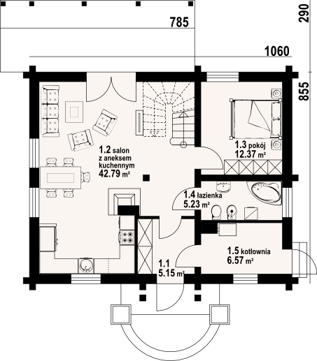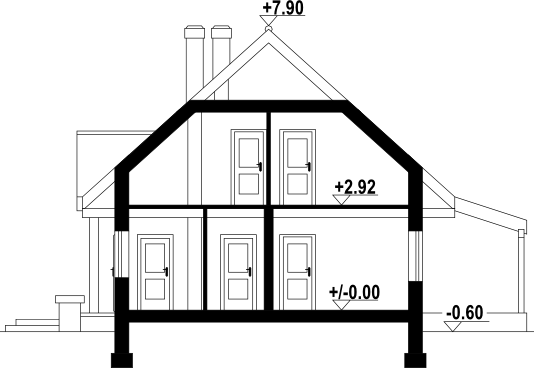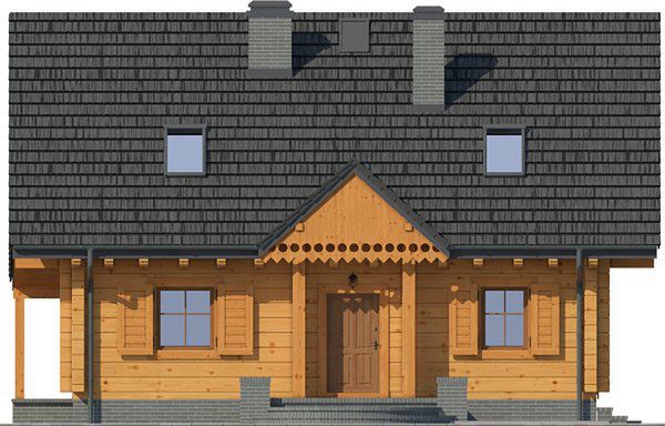 Graficzne opracowanie rzutów poglądowych widocznych na karcie projektu zostało wykonane przez Extradom.pl. Prezentowane przez Extradom.pl wizualizacje wykonane zostały przez autora projektu i należy poczytywać je jedynie za przykład i propozycję wykończenia, wizję architektoniczną autora projektu. Ostateczne wykończenie budynku może nastąpić na wiele sposobów. Szczegółowe rozwiązania zastosowane w oferowanej dokumentacji - w tym również ilość, lokalizacje i wygląd okien, drzwi, kominów - mogą w niewielkim stopniu różnić się od prezentowanej wizualizacji budynku.