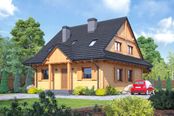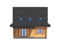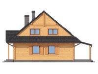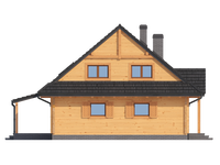 Wysokość ścianki kolankowej: 0.7 m. Strop: drewniany. Pokrycie dachu: dachówka gontopodobna Gerard Corona. Ściany zewnętrzne: płazy drewniane + wełna mineralna + deska. Ściany wewnętrzne: płazy drewniane. Typ ogrzewania: kocioł gazowy lub kocioł na paliwo stałe. Inne: okna połaciowe Velux.