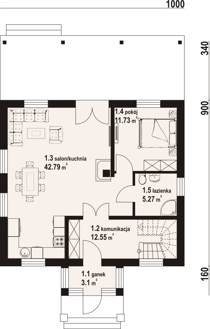 PROJEKT Z BUDOWĄ Istnieje możliwość zaadaptowania tego projektu do technologii prefabrykowanej/modułowej i budowy nawet w 6 miesięcy ze stałym kosztem budowy