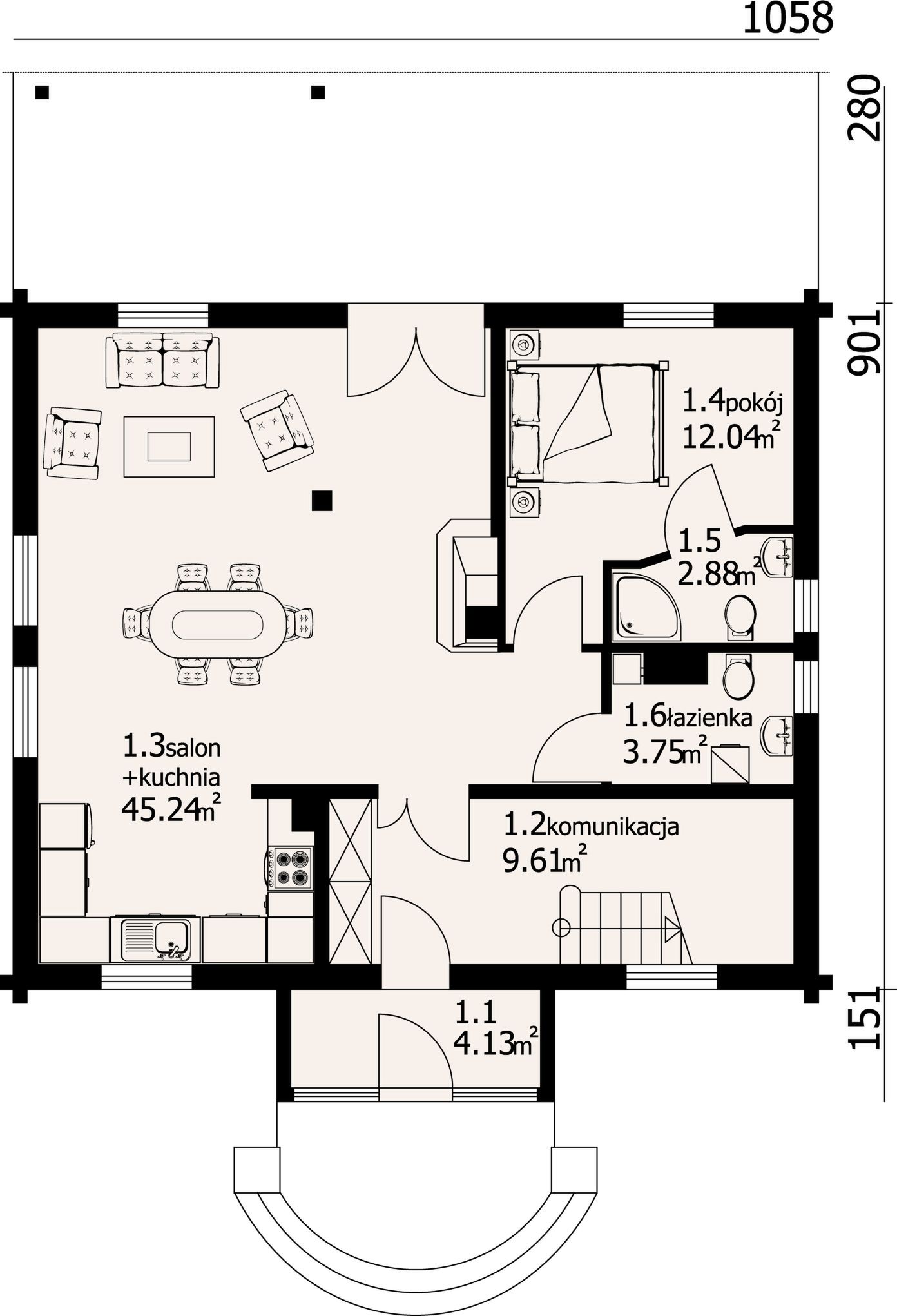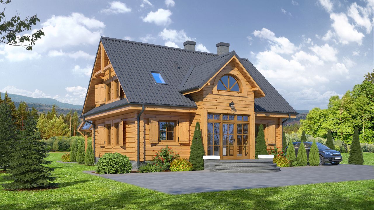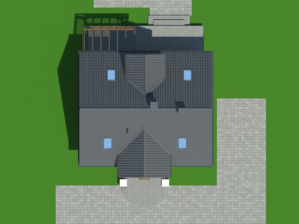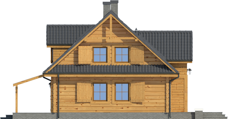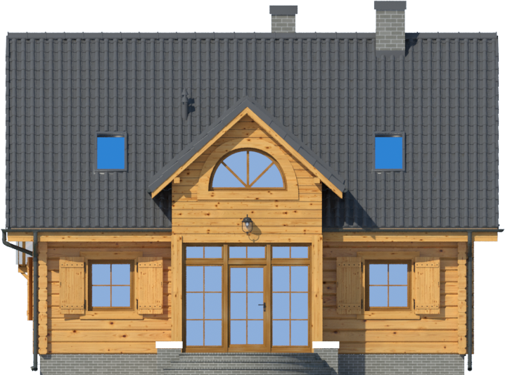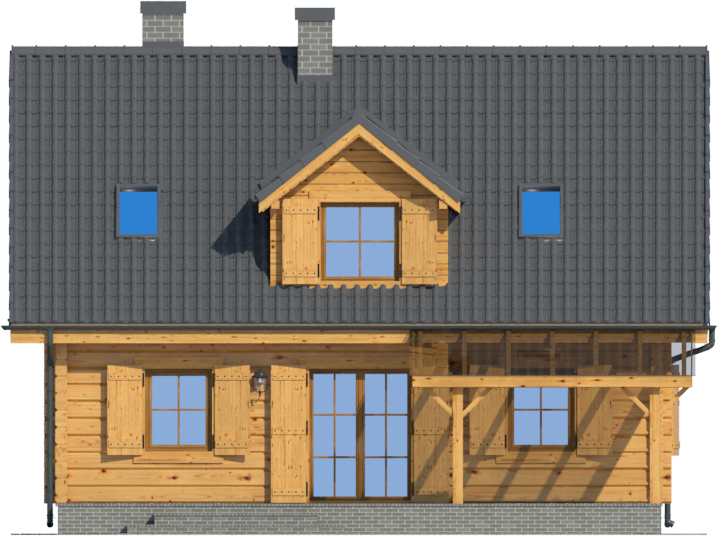 Graficzne opracowanie rzutów poglądowych widocznych na karcie projektu zostało wykonane przez Extradom.pl. Prezentowane przez Extradom.pl wizualizacje wykonane zostały przez autora projektu i należy poczytywać je jedynie za przykład i propozycję wykończenia, wizję architektoniczną autora projektu. Ostateczne wykończenie budynku może nastąpić na wiele sposobów. Szczegółowe rozwiązania zastosowane w oferowanej dokumentacji - w tym również ilość, lokalizacje i wygląd okien, drzwi, kominów - mogą w niewielkim stopniu różnić się od prezentowanej wizualizacji budynku.