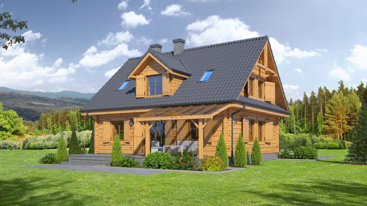Wys. ścianki kolankowej 0.64 m. Strop: drewniany. Pokrycie dachu: dachówka gontopodobna z posypką Gerard Corona. Ściany wewnętrzne: płazy drewniane. Ściany zewnętrzne: płazy drewniane + izolacja natryskowa Icynene. Typ ogrzewania: kocioł gazowy.
