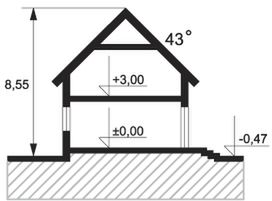 Graficzne opracowanie rzutów poglądowych widocznych na karcie projektu zostało wykonane przez Extradom.pl. Prezentowane przez Extradom.pl wizualizacje wykonane zostały przez autora projektu i należy poczytywać je jedynie za przykład i propozycję wykończenia, wizję architektoniczną autora projektu. Ostateczne wykończenie budynku może nastąpić na wiele sposobów. Szczegółowe rozwiązania zastosowane w oferowanej dokumentacji - w tym również ilość, lokalizacje i wygląd okien, drzwi, kominów - mogą w niewielkim stopniu różnić się od prezentowanej wizualizacji budynku.
