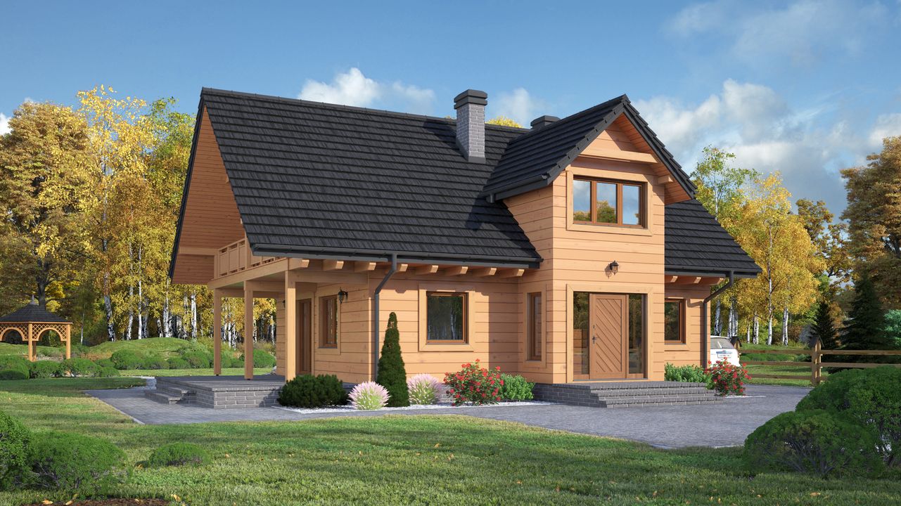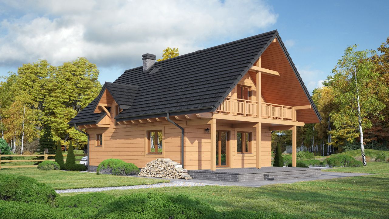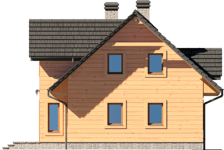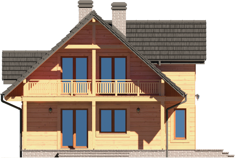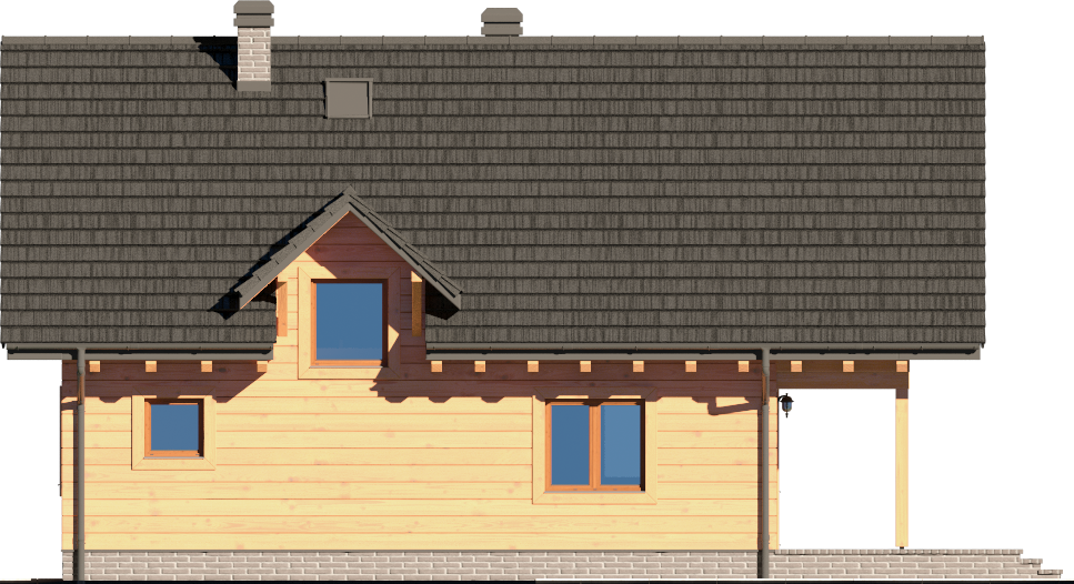 Graficzne opracowanie rzutów poglądowych widocznych na karcie projektu zostało wykonane przez Extradom.pl. Prezentowane przez Extradom.pl wizualizacje wykonane zostały przez autora projektu i należy poczytywać je jedynie za przykład i propozycję wykończenia, wizję architektoniczną autora projektu. Ostateczne wykończenie budynku może nastąpić na wiele sposobów. Szczegółowe rozwiązania zastosowane w oferowanej dokumentacji - w tym również ilość, lokalizacje i wygląd okien, drzwi, kominów - mogą w niewielkim stopniu różnić się od prezentowanej wizualizacji budynku.