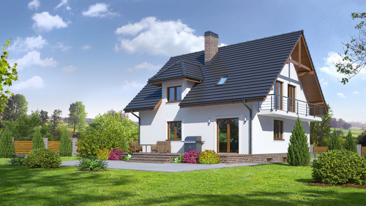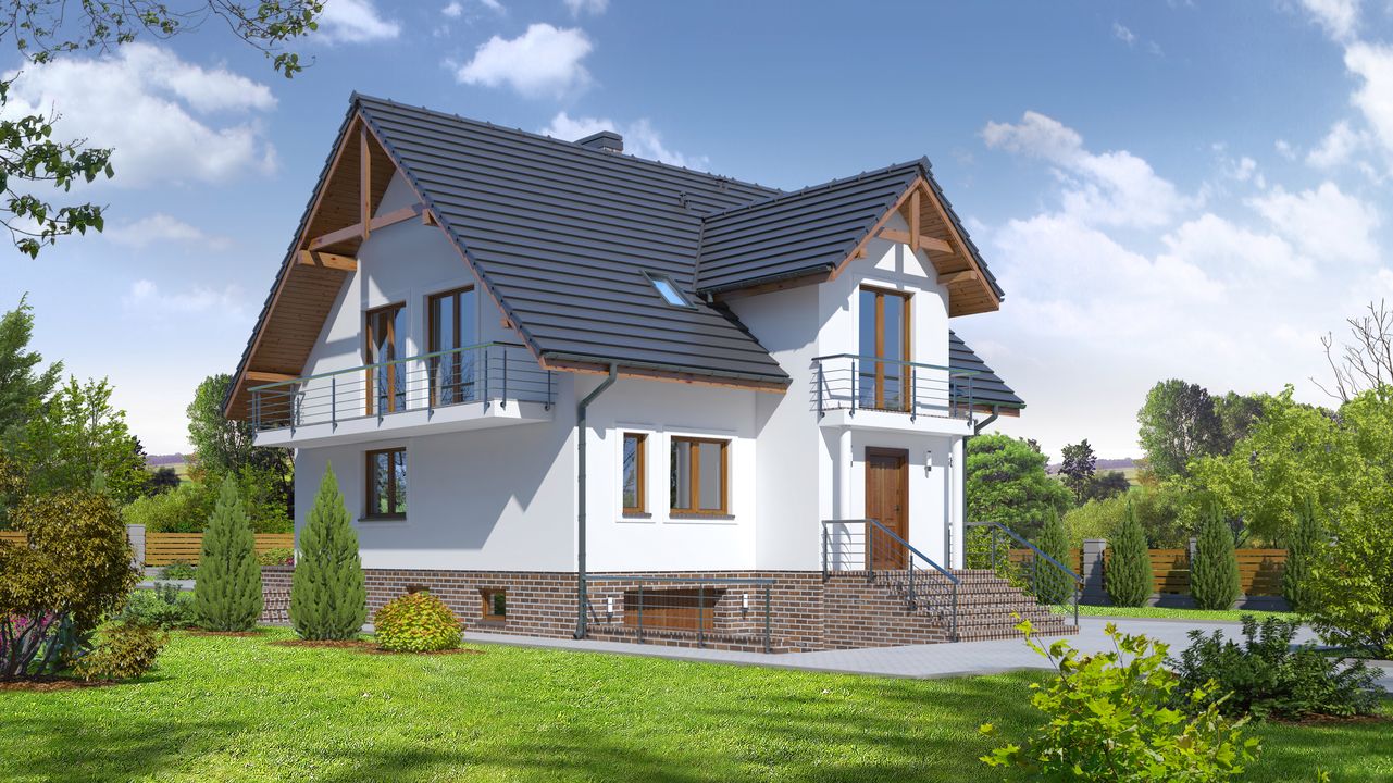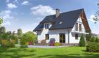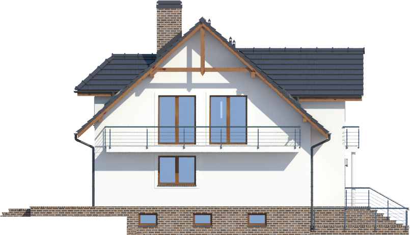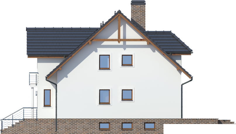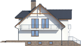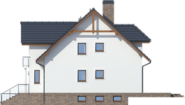 Graficzne opracowanie rzutów poglądowych widocznych na karcie projektu zostało wykonane przez Extradom.pl. Prezentowane przez Extradom.pl wizualizacje wykonane zostały przez autora projektu i należy poczytywać je jedynie za przykład i propozycję wykończenia, wizję architektoniczną autora projektu. Ostateczne wykończenie budynku może nastąpić na wiele sposobów. Szczegółowe rozwiązania zastosowane w oferowanej dokumentacji - w tym również ilość, lokalizacje i wygląd okien, drzwi, kominów - mogą w niewielkim stopniu różnić się od prezentowanej wizualizacji budynku.