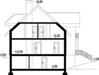 Wysokość ścianki kolankowej: 1.2 m Ilość drewna na więźbę: 9.59 m³. Strop: płyta żelbetowa. Pokrycie dachu: dachówka ceramiczna, na poddaszu izolacja natryskowa Icynene. Ściany zewnętrzne: pustaki ceramiczne + styropian. Ściany wewnętrzne: pustaki ceramiczne. Typ ogrzewania: kocioł gazowy lub kocioł na paliwo stałe. Inne: okna połaciowe Velux.