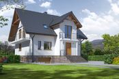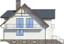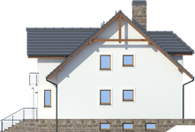 Graficzne opracowanie rzutów poglądowych widocznych na karcie projektu zostało wykonane przez Extradom.pl. Prezentowane przez Extradom.pl wizualizacje wykonane zostały przez autora projektu i należy poczytywać je jedynie za przykład i propozycję wykończenia, wizję architektoniczną autora projektu. Ostateczne wykończenie budynku może nastąpić na wiele sposobów. Szczegółowe rozwiązania zastosowane w oferowanej dokumentacji - w tym również ilość, lokalizacje i wygląd okien, drzwi, kominów - mogą w niewielkim stopniu różnić się od prezentowanej wizualizacji budynku.