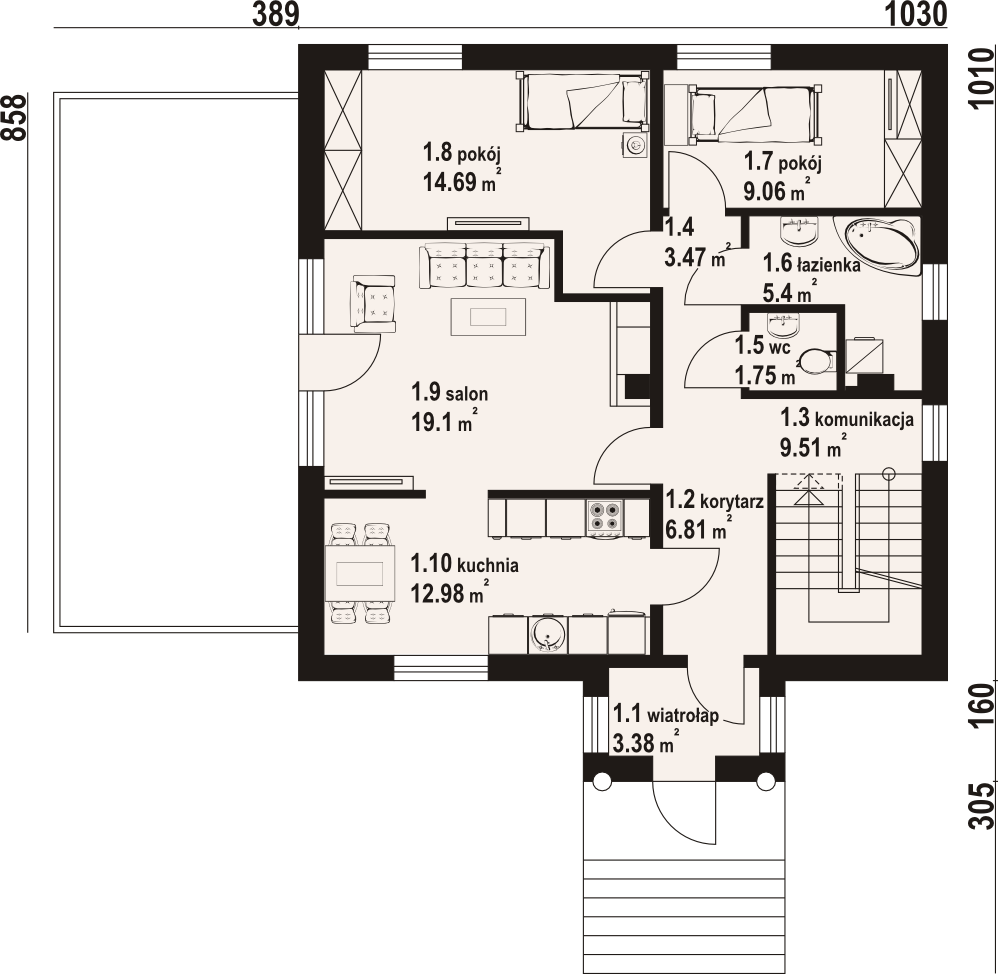 PROJEKT Z BUDOWĄ Istnieje możliwość zaadaptowania tego projektu do technologii prefabrykowanej/modułowej i budowy nawet w 6 miesięcy ze stałym kosztem budowy