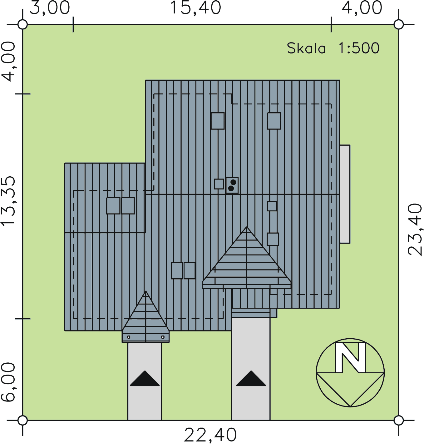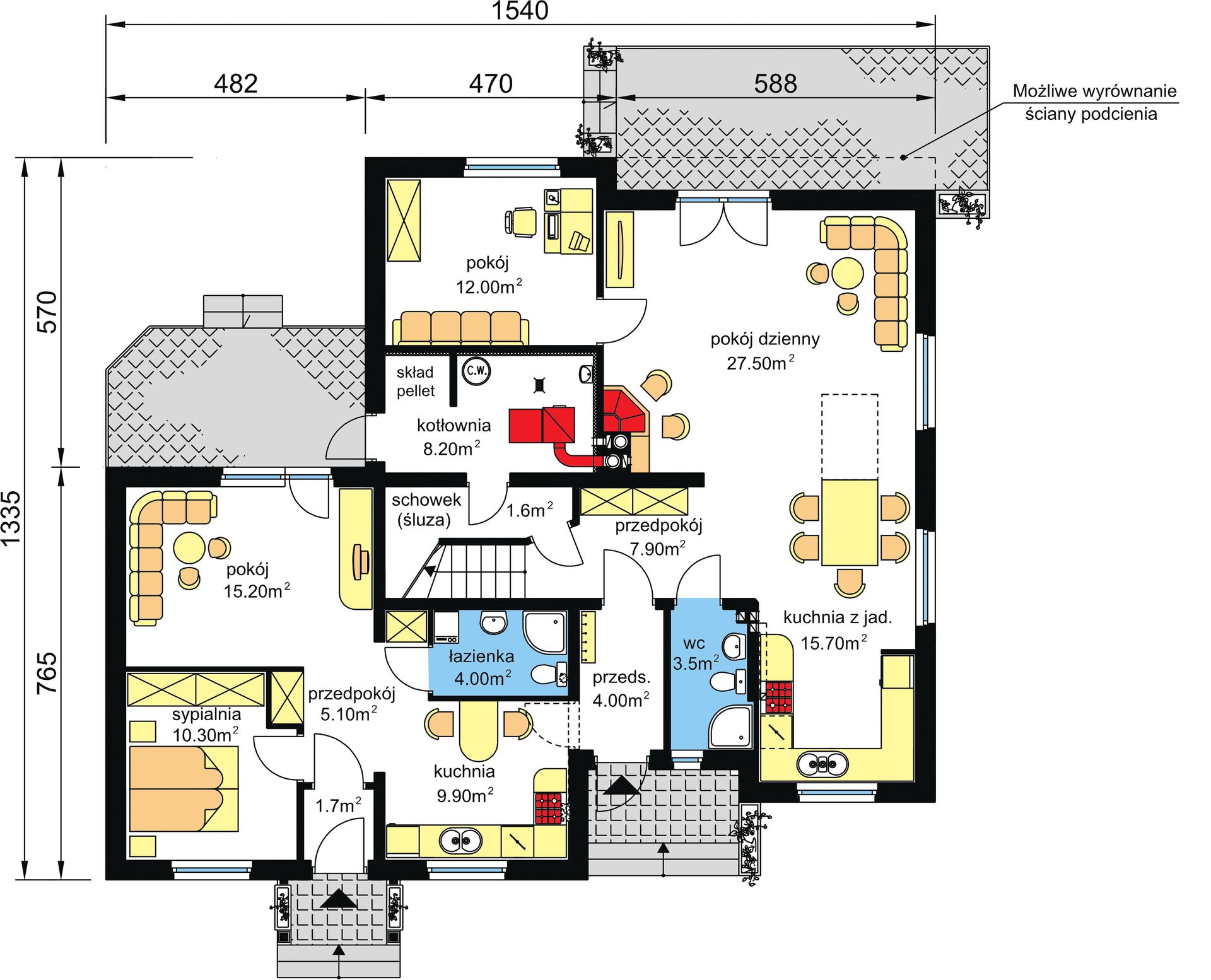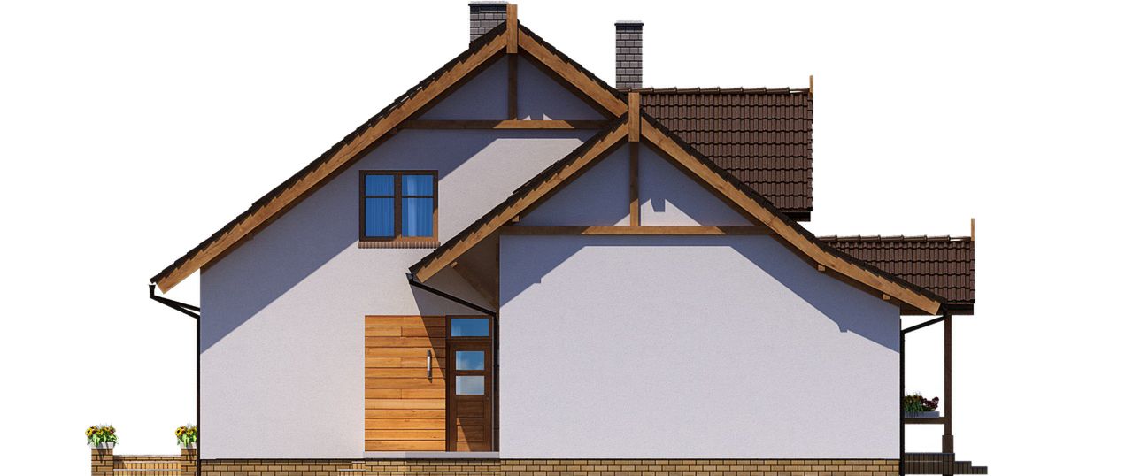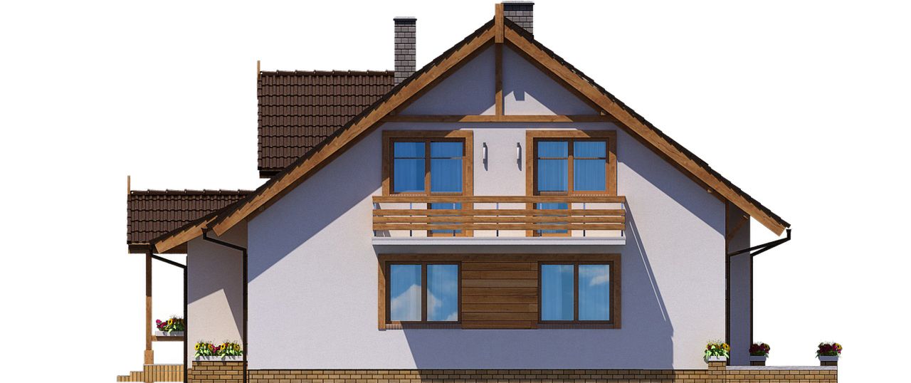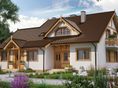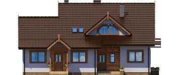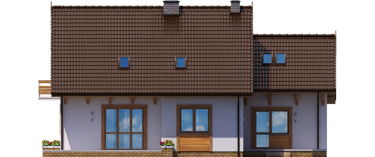 Graficzne opracowanie rzutów poglądowych widocznych na karcie projektu zostało wykonane przez Extradom.pl. Prezentowane przez Extradom.pl wizualizacje wykonane zostały przez autora projektu i należy poczytywać je jedynie za przykład i propozycję wykończenia, wizję architektoniczną autora projektu. Ostateczne wykończenie budynku może nastąpić na wiele sposobów. Szczegółowe rozwiązania zastosowane w oferowanej dokumentacji - w tym również ilość, lokalizacje i wygląd okien, drzwi, kominów - mogą w niewielkim stopniu różnić się od prezentowanej wizualizacji budynku.