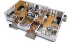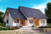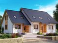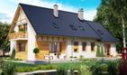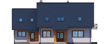 Graficzne opracowanie rzutów poglądowych widocznych na karcie projektu zostało wykonane przez Extradom.pl. Prezentowane przez Extradom.pl wizualizacje wykonane zostały przez autora projektu i należy poczytywać je jedynie za przykład i propozycję wykończenia, wizję architektoniczną autora projektu. Ostateczne wykończenie budynku może nastąpić na wiele sposobów. Szczegółowe rozwiązania zastosowane w oferowanej dokumentacji - w tym również ilość, lokalizacje i wygląd okien, drzwi, kominów - mogą w niewielkim stopniu różnić się od prezentowanej wizualizacji budynku.