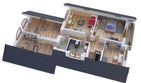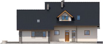 Graficzne opracowanie rzutów poglądowych widocznych na karcie projektu zostało wykonane przez Extradom.pl. Prezentowane przez Extradom.pl wizualizacje wykonane zostały przez autora projektu i należy poczytywać je jedynie za przykład i propozycję wykończenia, wizję architektoniczną autora projektu. Ostateczne wykończenie budynku może nastąpić na wiele sposobów. Szczegółowe rozwiązania zastosowane w oferowanej dokumentacji - w tym również ilość, lokalizacje i wygląd okien, drzwi, kominów - mogą w niewielkim stopniu różnić się od prezentowanej wizualizacji budynku.