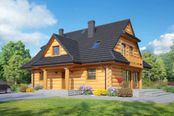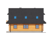 Wysokość ścianki kolankowej: 0.83 m. Strop: drewniany. Pokrycie dachu: dachówka gontopodobna Gerard Corona. Ściany zewnętrzne: płazy drewniane + wełna mineralna + deska. Ściany wewnętrzne: płazy drewniane. Typ ogrzewania: kocioł gazowy lub kocioł na paliwo stałe. Inne: okna połaciowe Fakro.