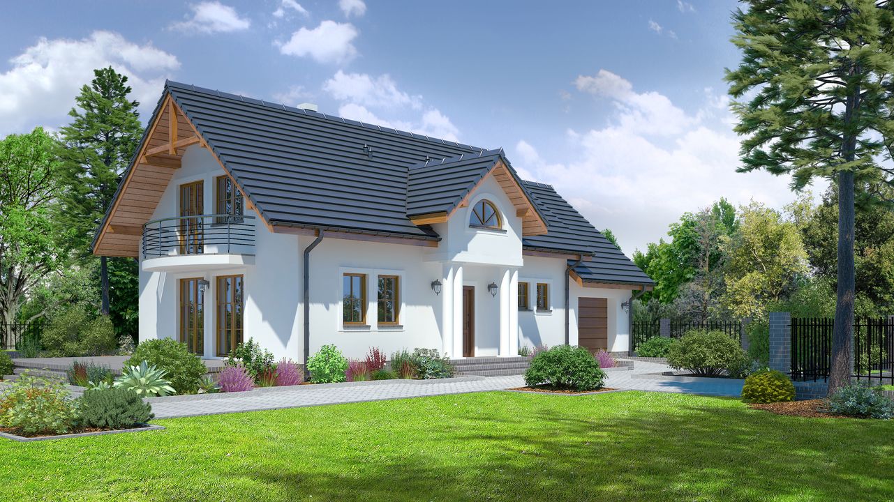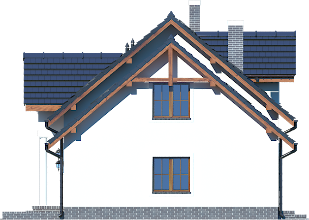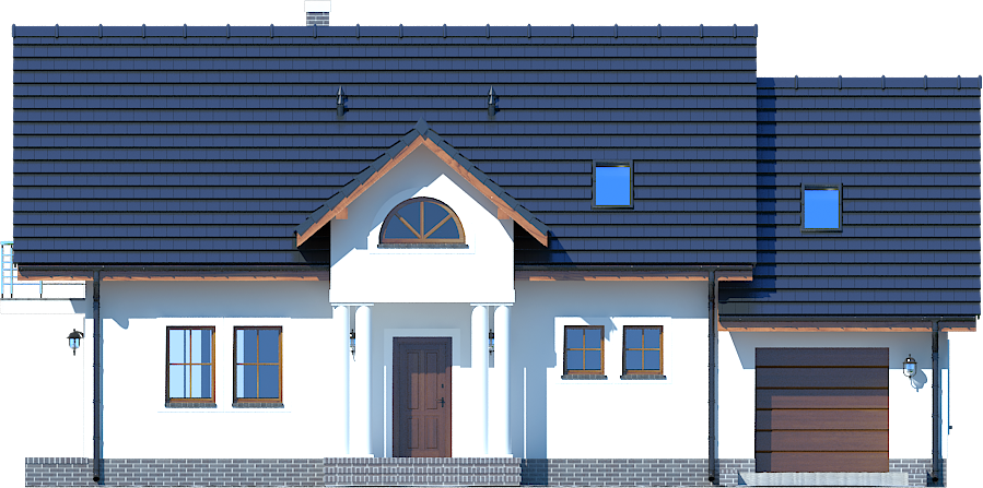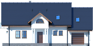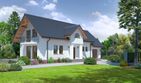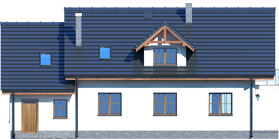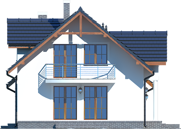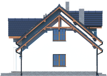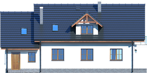 Graficzne opracowanie rzutów poglądowych widocznych na karcie projektu zostało wykonane przez Extradom.pl. Prezentowane przez Extradom.pl wizualizacje wykonane zostały przez autora projektu i należy poczytywać je jedynie za przykład i propozycję wykończenia, wizję architektoniczną autora projektu. Ostateczne wykończenie budynku może nastąpić na wiele sposobów. Szczegółowe rozwiązania zastosowane w oferowanej dokumentacji - w tym również ilość, lokalizacje i wygląd okien, drzwi, kominów - mogą w niewielkim stopniu różnić się od prezentowanej wizualizacji budynku.