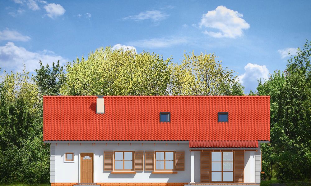 Graficzne opracowanie rzutów poglądowych widocznych na karcie projektu zostało wykonane przez Extradom.pl. Prezentowane przez Extradom.pl wizualizacje wykonane zostały przez autora projektu i należy poczytywać je jedynie za przykład i propozycję wykończenia, wizję architektoniczną autora projektu. Ostateczne wykończenie budynku może nastąpić na wiele sposobów. Szczegółowe rozwiązania zastosowane w oferowanej dokumentacji - w tym również ilość, lokalizacje i wygląd okien, drzwi, kominów - mogą w niewielkim stopniu różnić się od prezentowanej wizualizacji budynku.