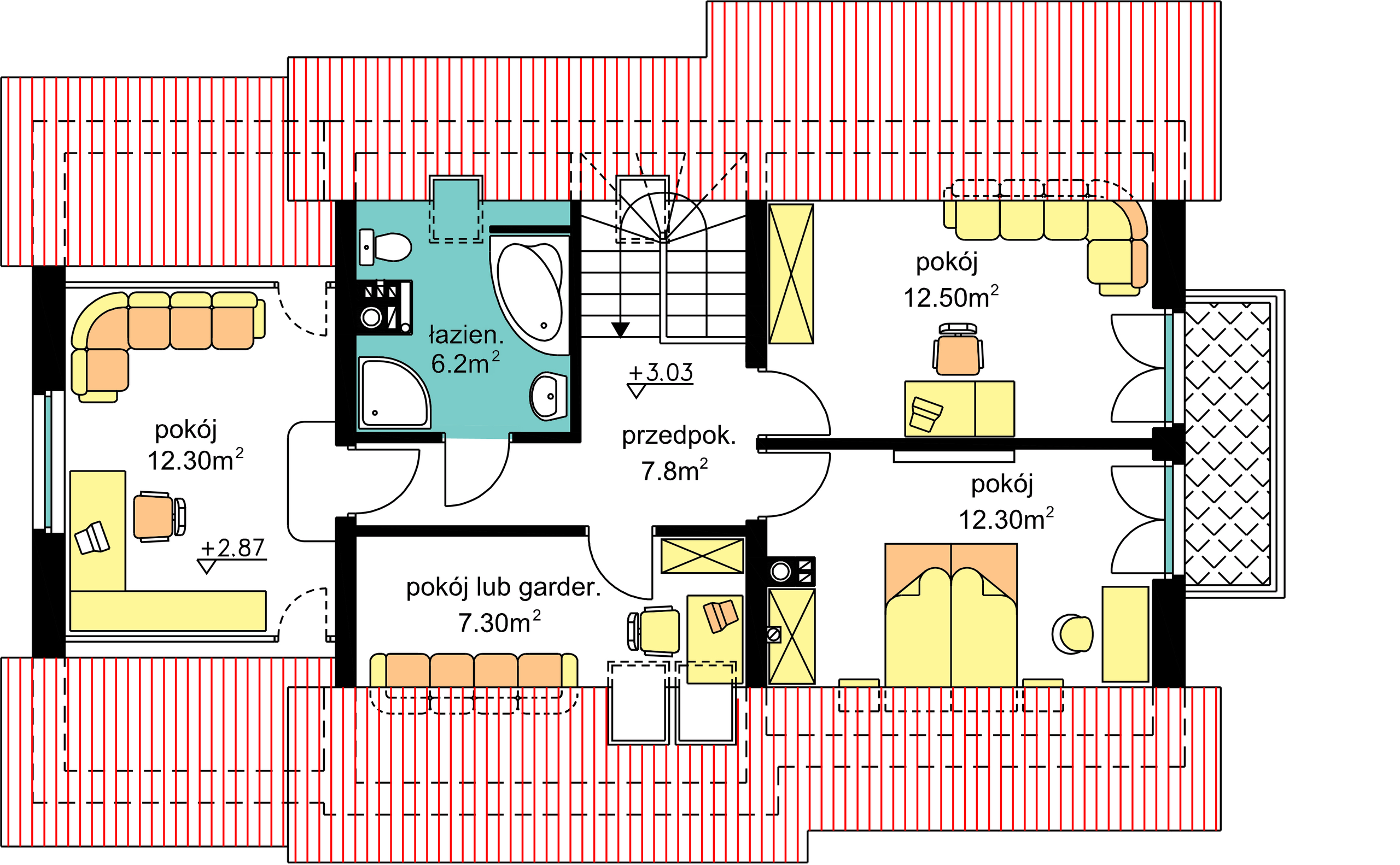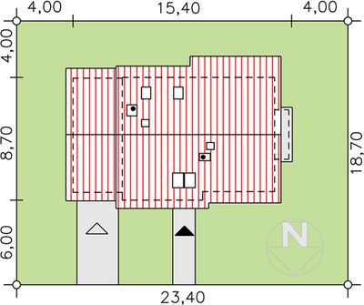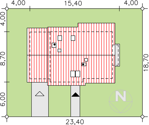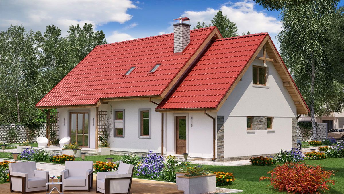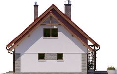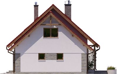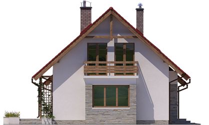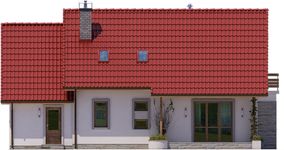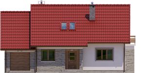 Graficzne opracowanie rzutów poglądowych widocznych na karcie projektu zostało wykonane przez Extradom.pl. Prezentowane przez Extradom.pl wizualizacje wykonane zostały przez autora projektu i należy poczytywać je jedynie za przykład i propozycję wykończenia, wizję architektoniczną autora projektu. Ostateczne wykończenie budynku może nastąpić na wiele sposobów. Szczegółowe rozwiązania zastosowane w oferowanej dokumentacji - w tym również ilość, lokalizacje i wygląd okien, drzwi, kominów - mogą w niewielkim stopniu różnić się od prezentowanej wizualizacji budynku.