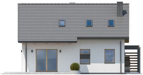 Graficzne opracowanie rzutów poglądowych widocznych na karcie projektu zostało wykonane przez Extradom.pl. Prezentowane przez Extradom.pl wizualizacje wykonane zostały przez autora projektu i należy poczytywać je jedynie za przykład i propozycję wykończenia, wizję architektoniczną autora projektu. Ostateczne wykończenie budynku może nastąpić na wiele sposobów. Szczegółowe rozwiązania zastosowane w oferowanej dokumentacji - w tym również ilość, lokalizacje i wygląd okien, drzwi, kominów - mogą w niewielkim stopniu różnić się od prezentowanej wizualizacji budynku.