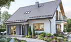 Graficzne opracowanie rzutów poglądowych widocznych na karcie projektu zostało wykonane przez Extradom.pl. Prezentowane przez Extradom.pl wizualizacje wykonane zostały przez autora projektu i należy poczytywać je jedynie za przykład i propozycję wykończenia, wizję architektoniczną autora projektu. Ostateczne wykończenie budynku może nastąpić na wiele sposobów. Szczegółowe rozwiązania zastosowane w oferowanej dokumentacji - w tym również ilość, lokalizacje i wygląd okien, drzwi, kominów - mogą w niewielkim stopniu różnić się od prezentowanej wizualizacji budynku.