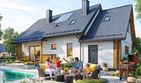Graficzne opracowanie rzutów poglądowych widocznych na karcie projektu zostało wykonane przez Extradom.pl. Prezentowane przez Extradom.pl wizualizacje wykonane zostały przez autora projektu i należy poczytywać je jedynie za przykład i propozycję wykończenia, wizję architektoniczną autora projektu. Ostateczne wykończenie budynku może nastąpić na wiele sposobów. Szczegółowe rozwiązania zastosowane w oferowanej dokumentacji - w tym również ilość, lokalizacje i wygląd okien, drzwi, kominów - mogą w niewielkim stopniu różnić się od prezentowanej wizualizacji budynku.
