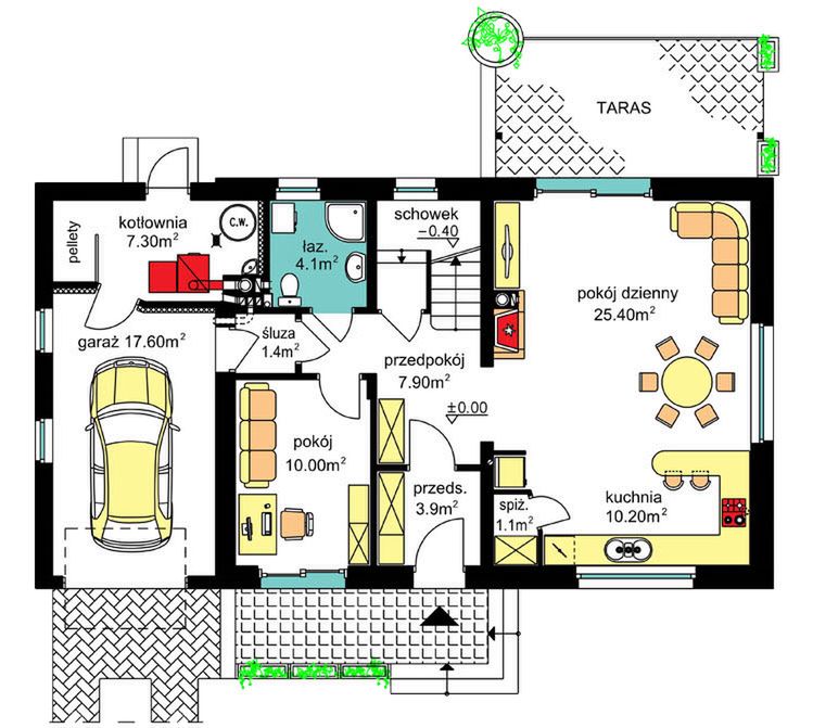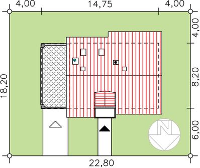 Graficzne opracowanie rzutów poglądowych widocznych na karcie projektu zostało wykonane przez Extradom.pl. Prezentowane przez Extradom.pl wizualizacje wykonane zostały przez autora projektu i należy poczytywać je jedynie za przykład i propozycję wykończenia, wizję architektoniczną autora projektu. Ostateczne wykończenie budynku może nastąpić na wiele sposobów. Szczegółowe rozwiązania zastosowane w oferowanej dokumentacji - w tym również ilość, lokalizacje i wygląd okien, drzwi, kominów - mogą w niewielkim stopniu różnić się od prezentowanej wizualizacji budynku.