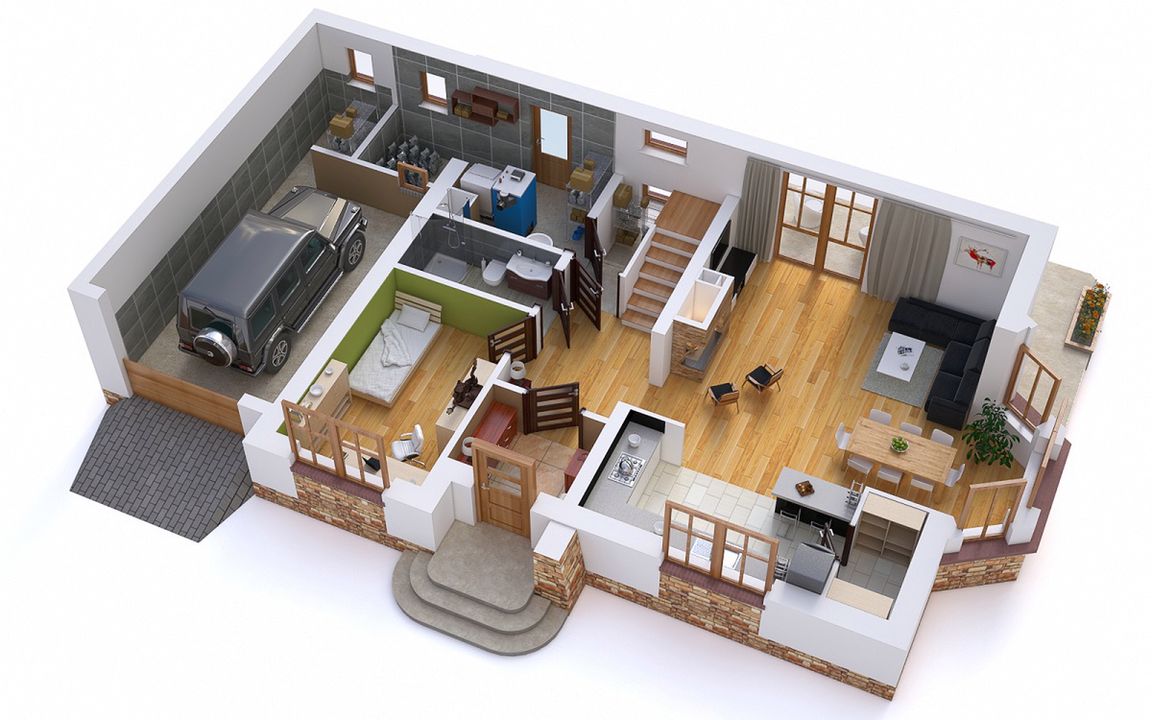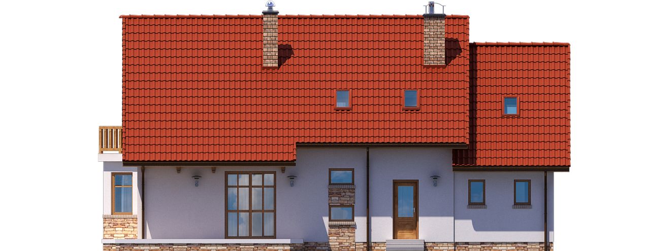 Graficzne opracowanie rzutów poglądowych widocznych na karcie projektu zostało wykonane przez Extradom.pl. Prezentowane przez Extradom.pl wizualizacje wykonane zostały przez autora projektu i należy poczytywać je jedynie za przykład i propozycję wykończenia, wizję architektoniczną autora projektu. Ostateczne wykończenie budynku może nastąpić na wiele sposobów. Szczegółowe rozwiązania zastosowane w oferowanej dokumentacji - w tym również ilość, lokalizacje i wygląd okien, drzwi, kominów - mogą w niewielkim stopniu różnić się od prezentowanej wizualizacji budynku.
