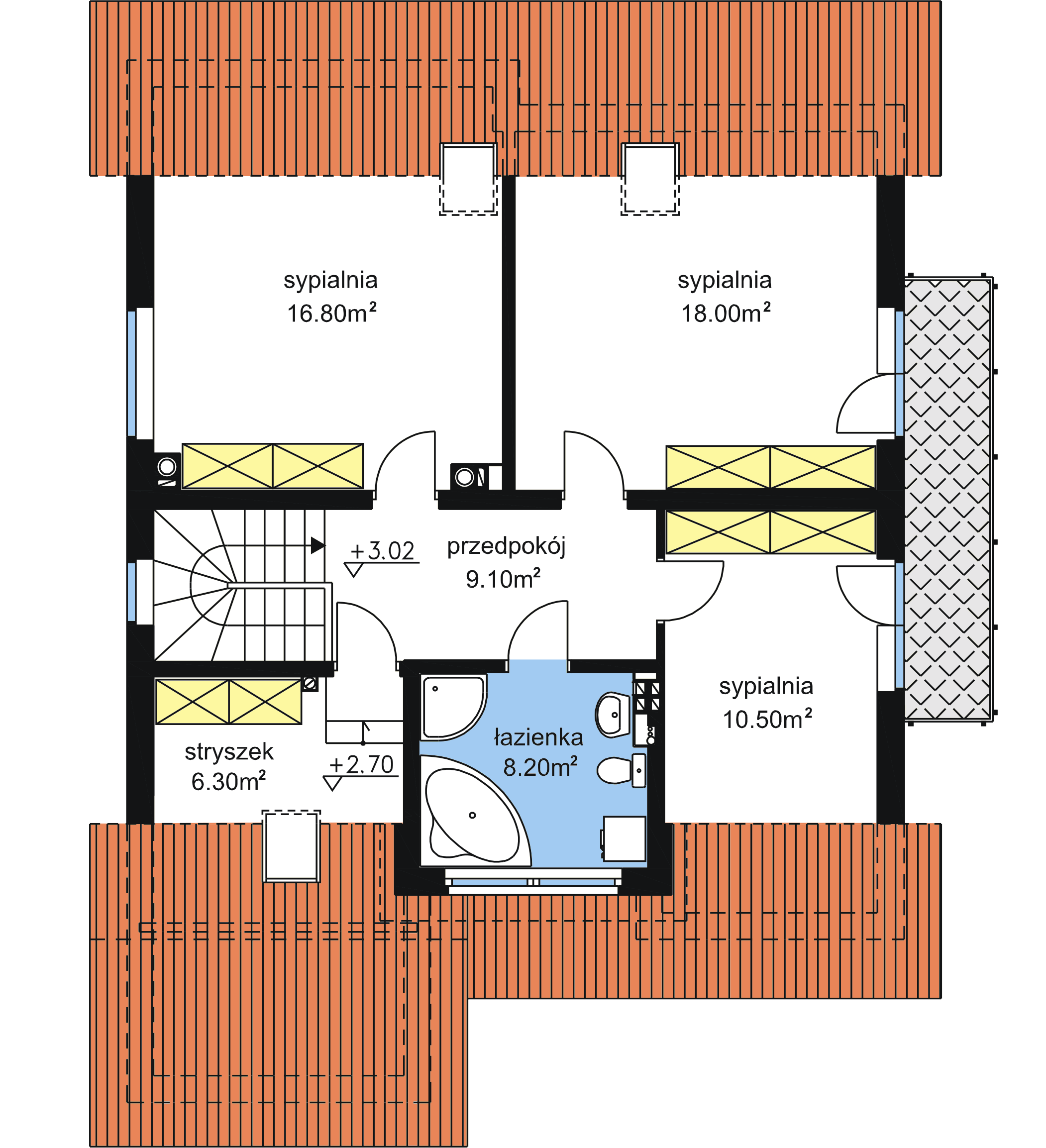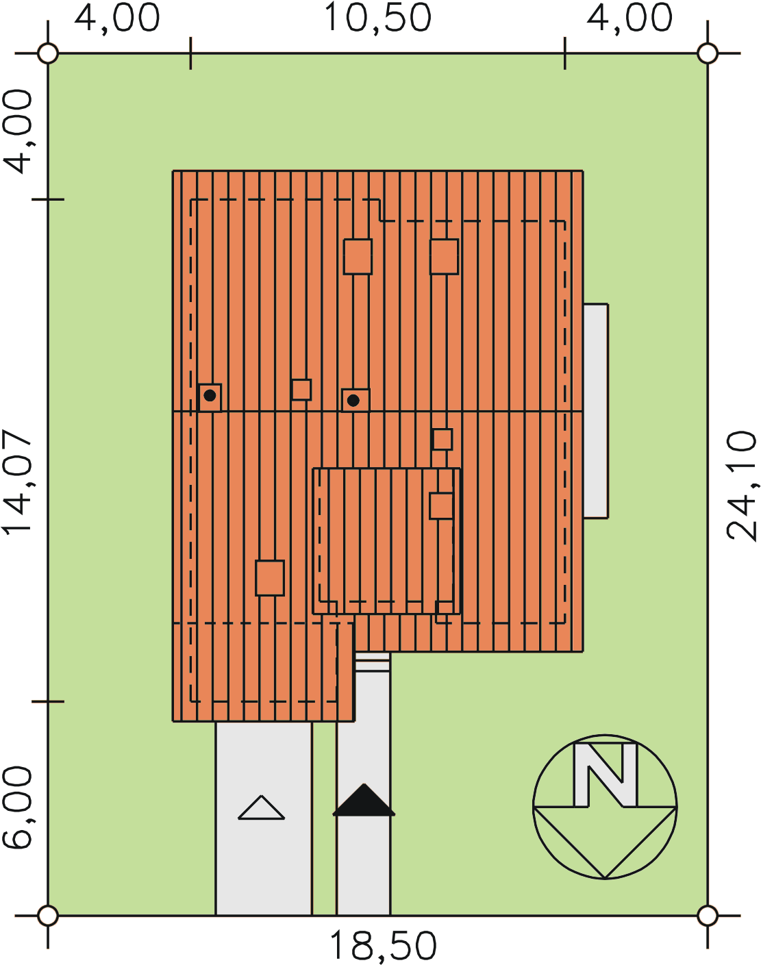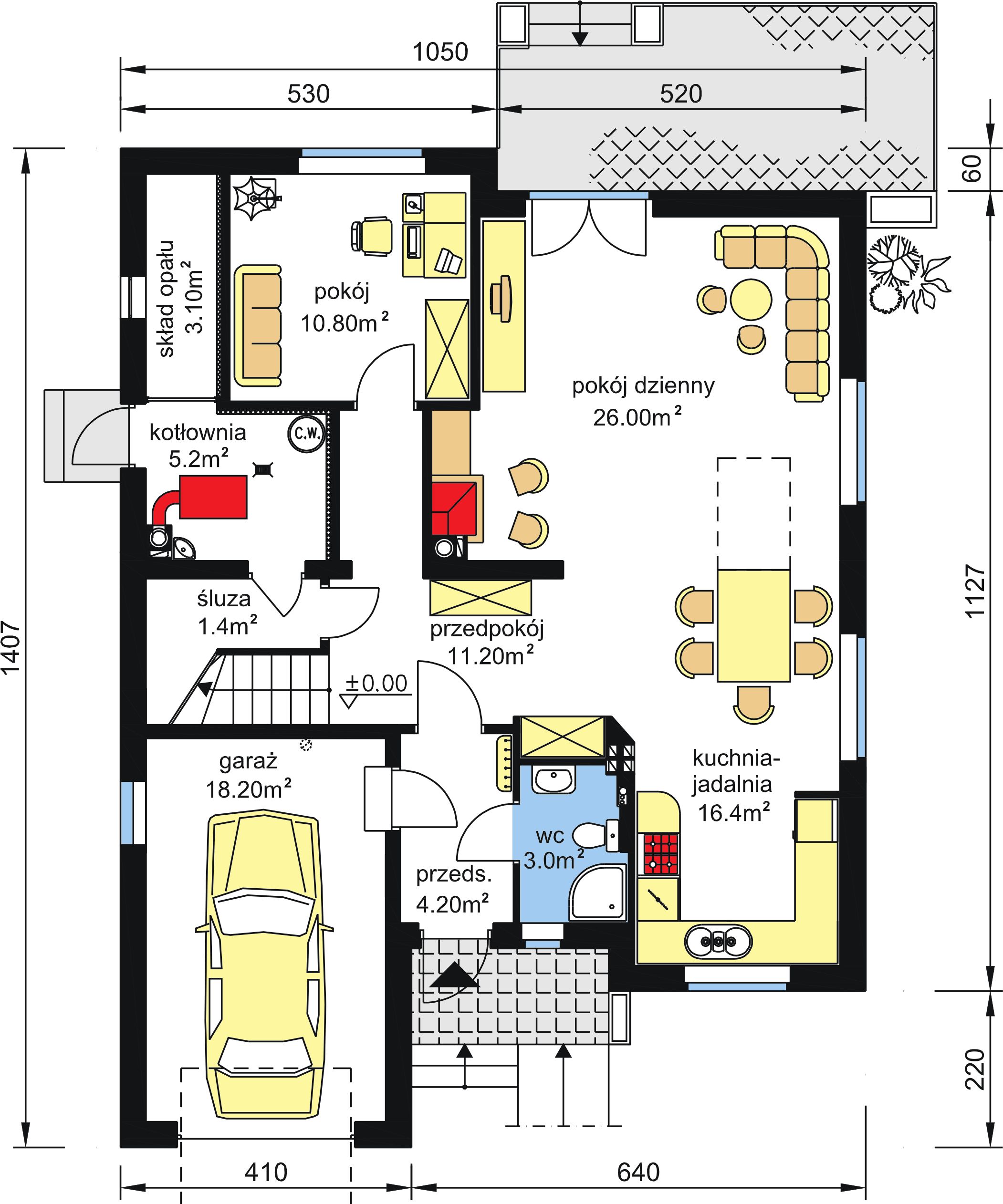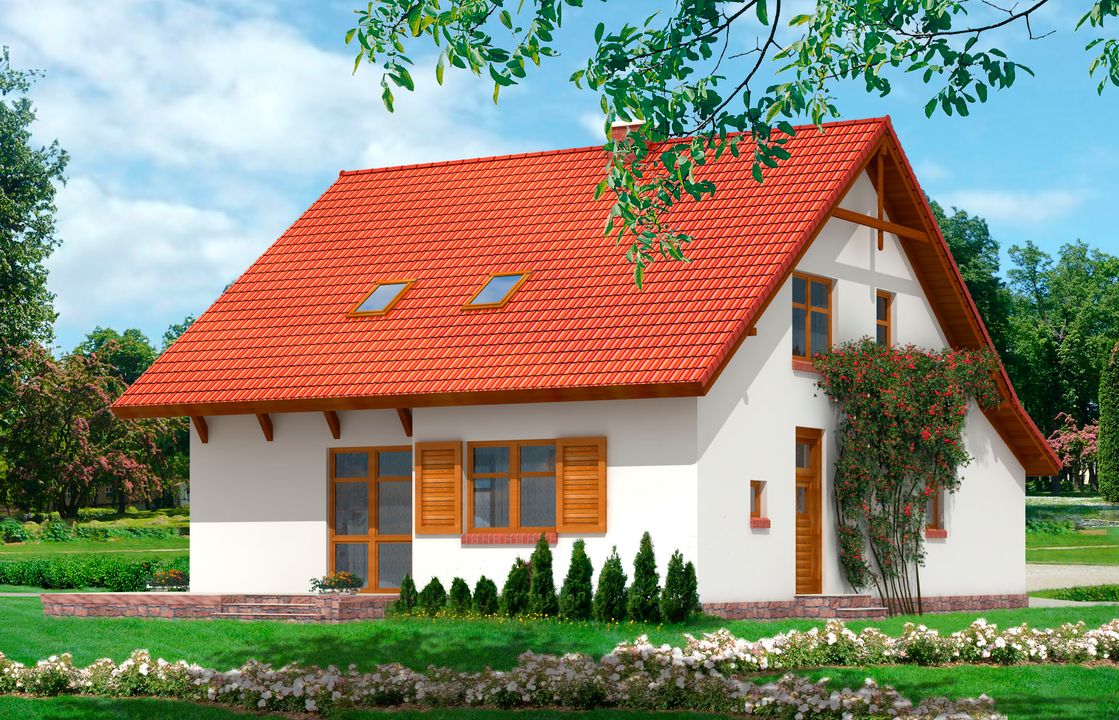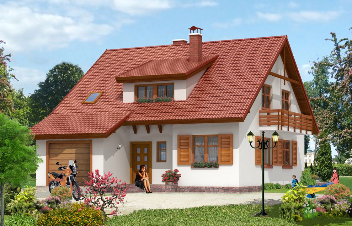 Graficzne opracowanie rzutów poglądowych widocznych na karcie projektu zostało wykonane przez Extradom.pl. Prezentowane przez Extradom.pl wizualizacje wykonane zostały przez autora projektu i należy poczytywać je jedynie za przykład i propozycję wykończenia, wizję architektoniczną autora projektu. Ostateczne wykończenie budynku może nastąpić na wiele sposobów. Szczegółowe rozwiązania zastosowane w oferowanej dokumentacji - w tym również ilość, lokalizacje i wygląd okien, drzwi, kominów - mogą w niewielkim stopniu różnić się od prezentowanej wizualizacji budynku.
