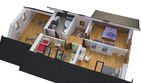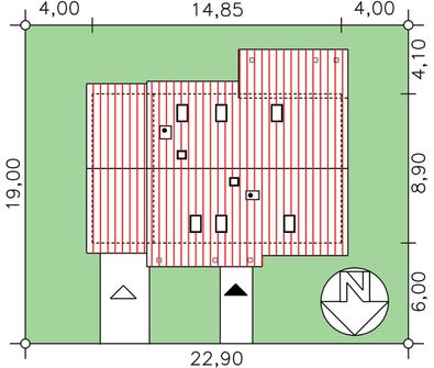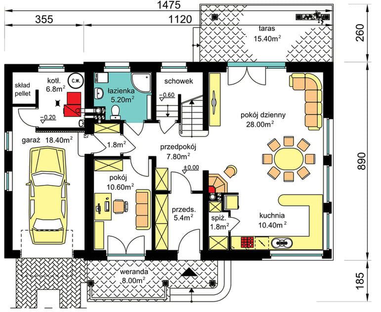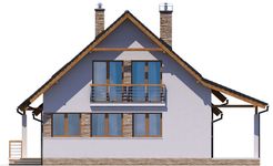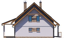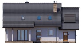 Graficzne opracowanie rzutów poglądowych widocznych na karcie projektu zostało wykonane przez Extradom.pl. Prezentowane przez Extradom.pl wizualizacje wykonane zostały przez autora projektu i należy poczytywać je jedynie za przykład i propozycję wykończenia, wizję architektoniczną autora projektu. Ostateczne wykończenie budynku może nastąpić na wiele sposobów. Szczegółowe rozwiązania zastosowane w oferowanej dokumentacji - w tym również ilość, lokalizacje i wygląd okien, drzwi, kominów - mogą w niewielkim stopniu różnić się od prezentowanej wizualizacji budynku.
