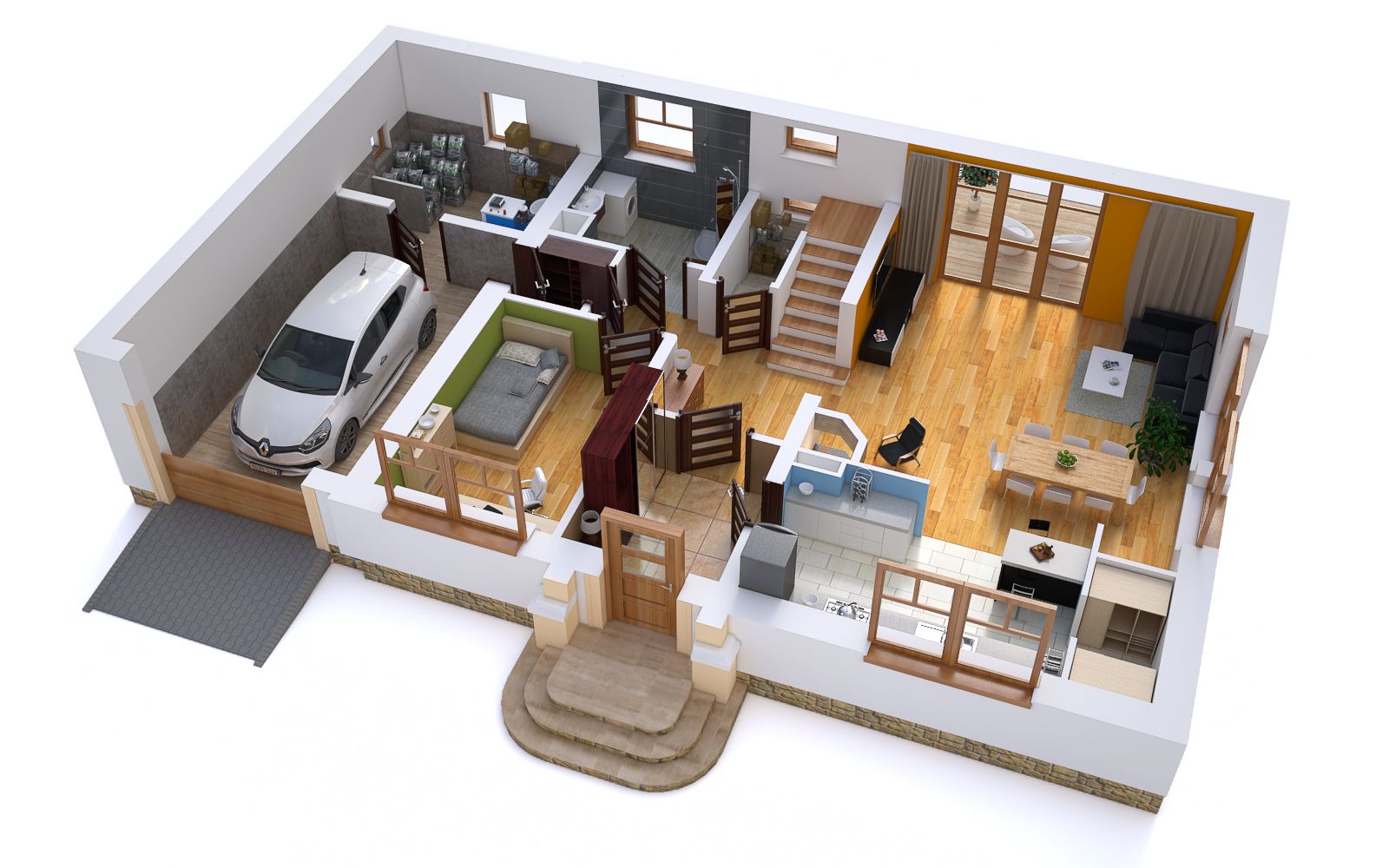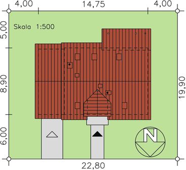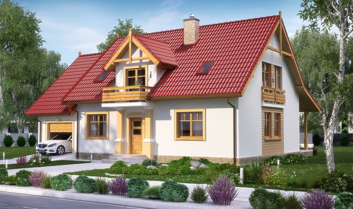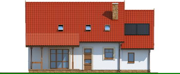 Graficzne opracowanie rzutów poglądowych widocznych na karcie projektu zostało wykonane przez Extradom.pl. Prezentowane przez Extradom.pl wizualizacje wykonane zostały przez autora projektu i należy poczytywać je jedynie za przykład i propozycję wykończenia, wizję architektoniczną autora projektu. Ostateczne wykończenie budynku może nastąpić na wiele sposobów. Szczegółowe rozwiązania zastosowane w oferowanej dokumentacji - w tym również ilość, lokalizacje i wygląd okien, drzwi, kominów - mogą w niewielkim stopniu różnić się od prezentowanej wizualizacji budynku.