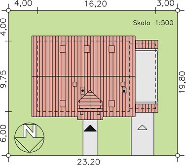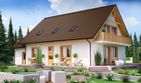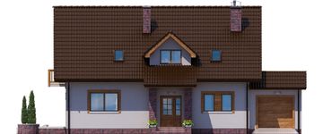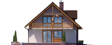 Graficzne opracowanie rzutów poglądowych widocznych na karcie projektu zostało wykonane przez Extradom.pl. Prezentowane przez Extradom.pl wizualizacje wykonane zostały przez autora projektu i należy poczytywać je jedynie za przykład i propozycję wykończenia, wizję architektoniczną autora projektu. Ostateczne wykończenie budynku może nastąpić na wiele sposobów. Szczegółowe rozwiązania zastosowane w oferowanej dokumentacji - w tym również ilość, lokalizacje i wygląd okien, drzwi, kominów - mogą w niewielkim stopniu różnić się od prezentowanej wizualizacji budynku.