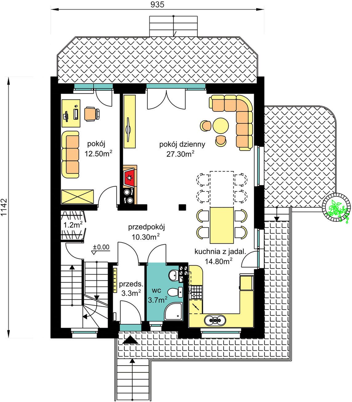 Parter pełni funkcję strefy dziennej i obejmuje: