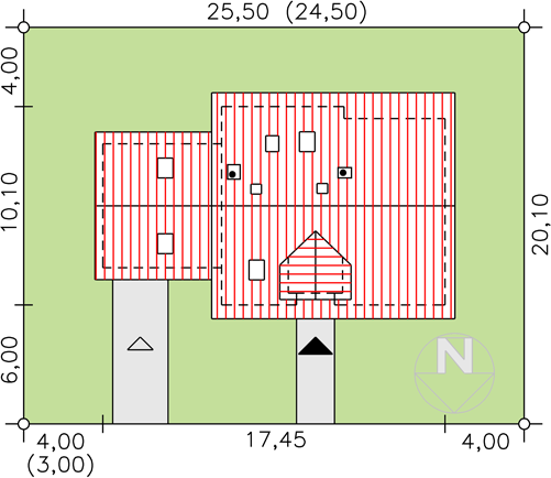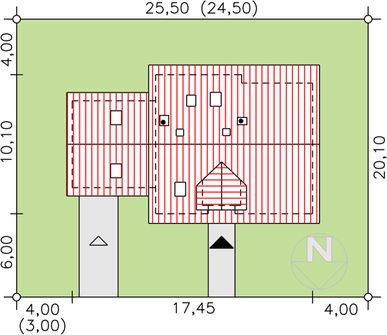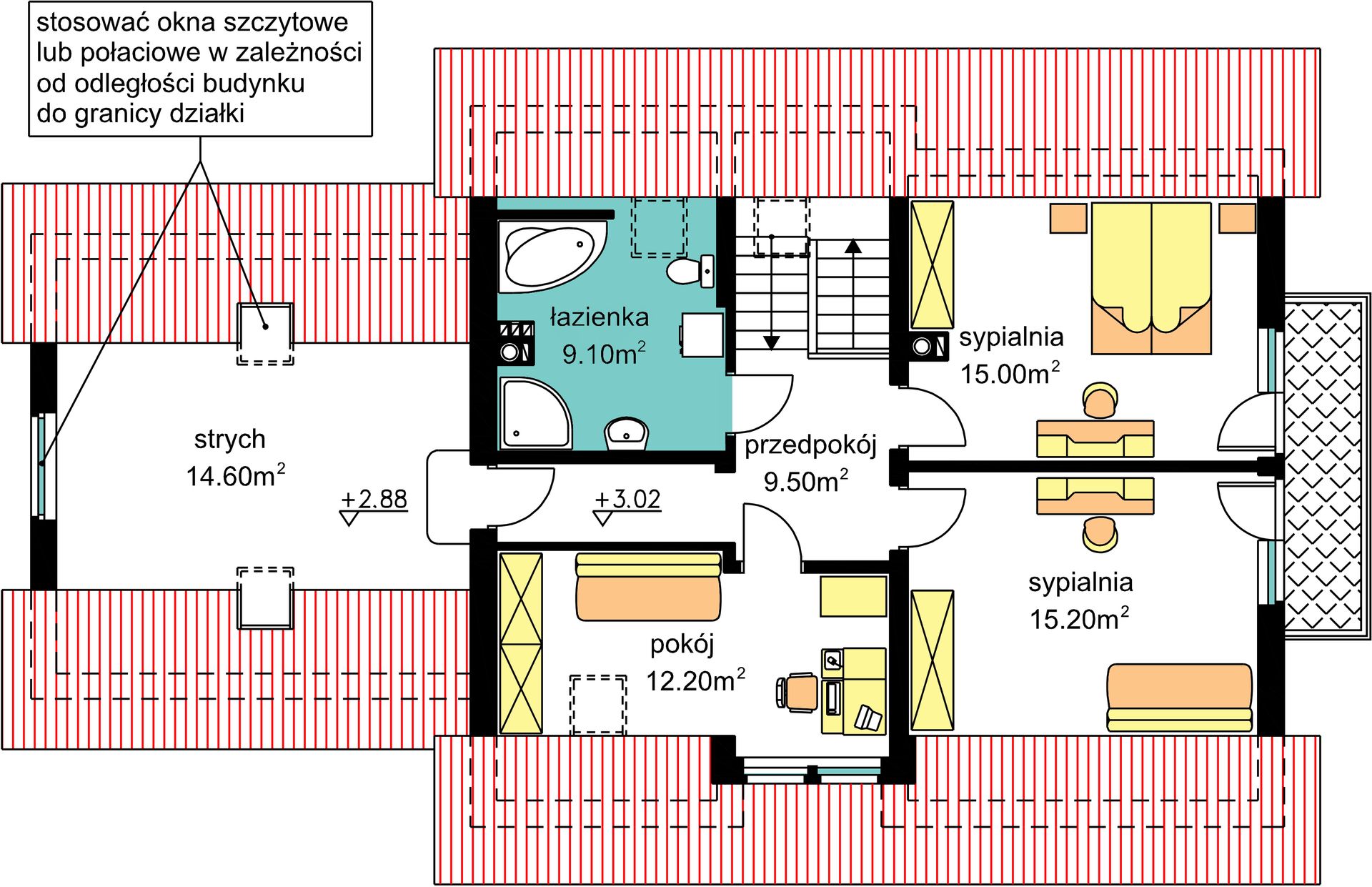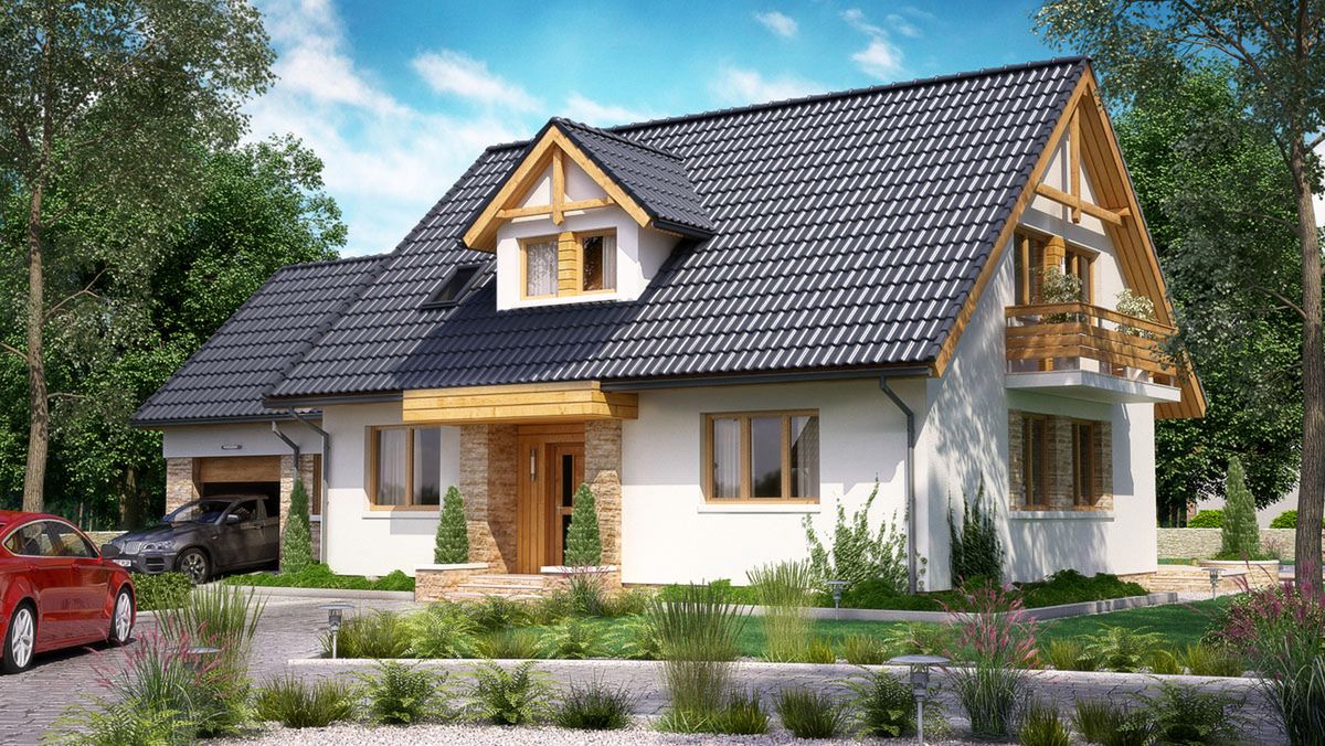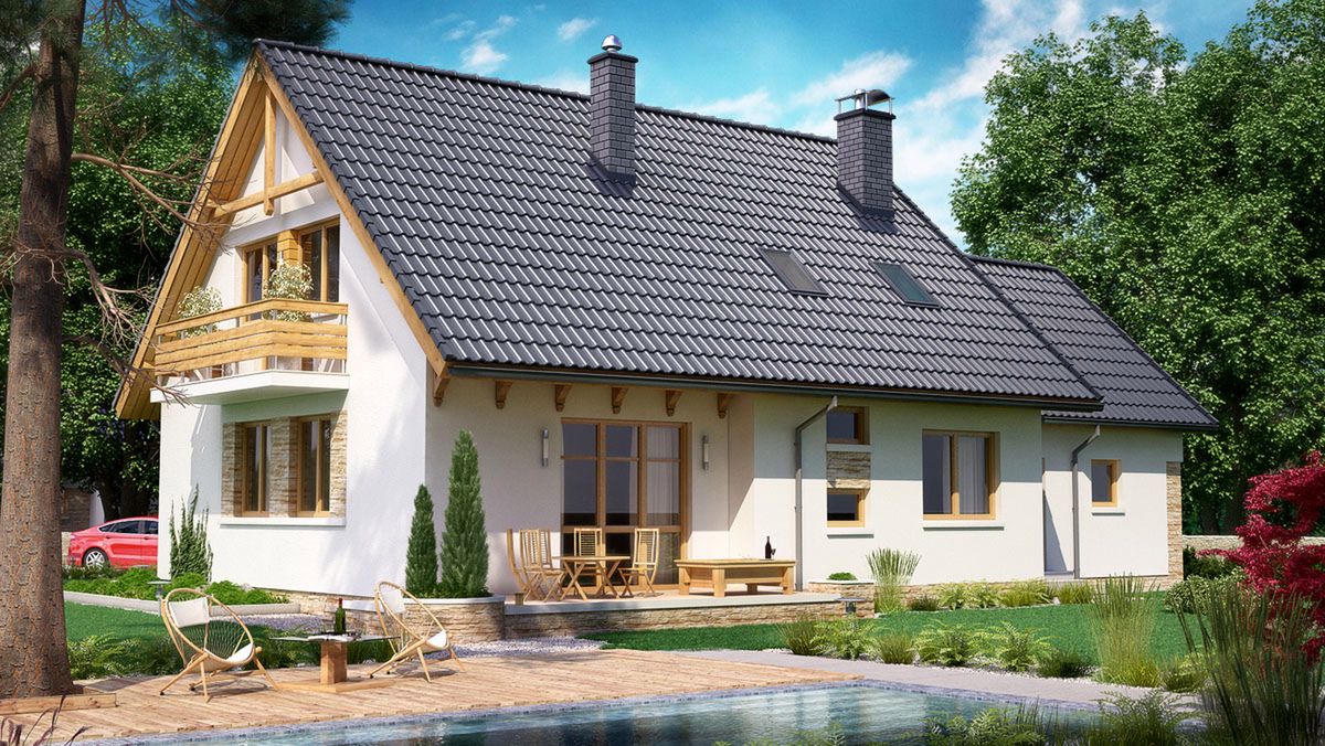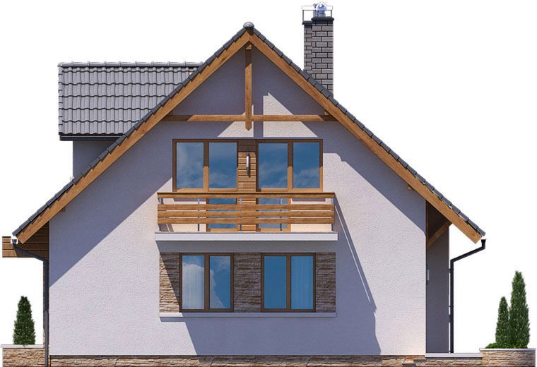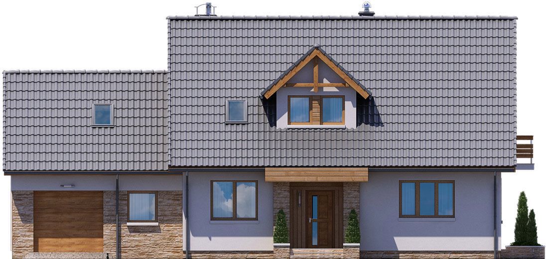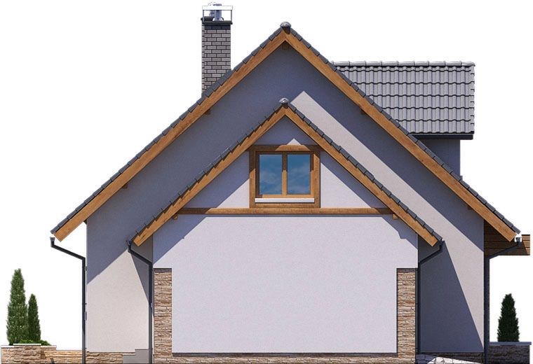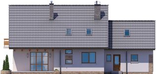 Graficzne opracowanie rzutów poglądowych widocznych na karcie projektu zostało wykonane przez Extradom.pl. Prezentowane przez Extradom.pl wizualizacje wykonane zostały przez autora projektu i należy poczytywać je jedynie za przykład i propozycję wykończenia, wizję architektoniczną autora projektu. Ostateczne wykończenie budynku może nastąpić na wiele sposobów. Szczegółowe rozwiązania zastosowane w oferowanej dokumentacji - w tym również ilość, lokalizacje i wygląd okien, drzwi, kominów - mogą w niewielkim stopniu różnić się od prezentowanej wizualizacji budynku.