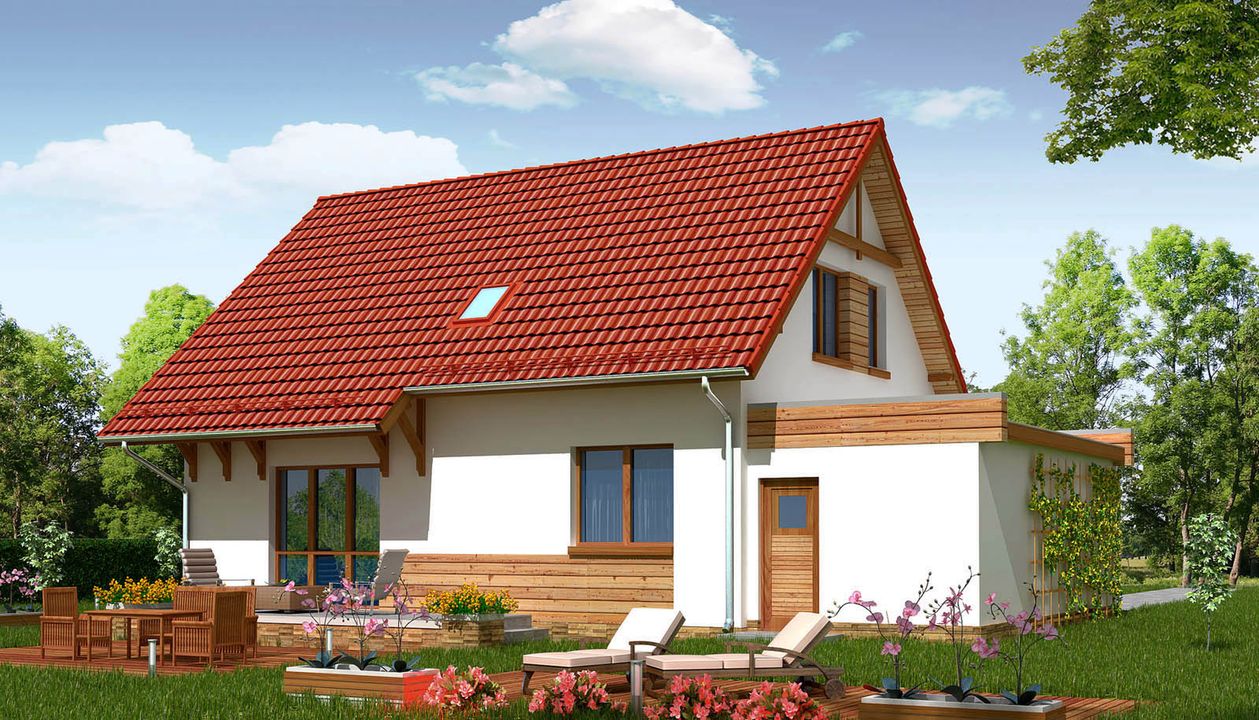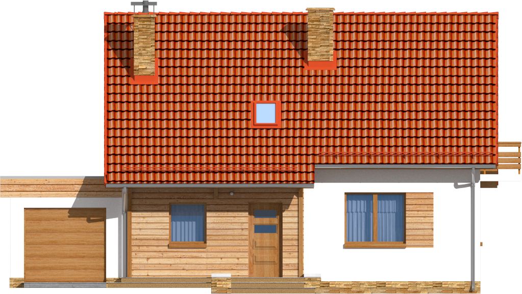 Graficzne opracowanie rzutów poglądowych widocznych na karcie projektu zostało wykonane przez Extradom.pl. Prezentowane przez Extradom.pl wizualizacje wykonane zostały przez autora projektu i należy poczytywać je jedynie za przykład i propozycję wykończenia, wizję architektoniczną autora projektu. Ostateczne wykończenie budynku może nastąpić na wiele sposobów. Szczegółowe rozwiązania zastosowane w oferowanej dokumentacji - w tym również ilość, lokalizacje i wygląd okien, drzwi, kominów - mogą w niewielkim stopniu różnić się od prezentowanej wizualizacji budynku.