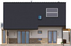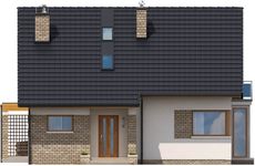 Graficzne opracowanie rzutów poglądowych widocznych na karcie projektu zostało wykonane przez Extradom.pl. Prezentowane przez Extradom.pl wizualizacje wykonane zostały przez autora projektu i należy poczytywać je jedynie za przykład i propozycję wykończenia, wizję architektoniczną autora projektu. Ostateczne wykończenie budynku może nastąpić na wiele sposobów. Szczegółowe rozwiązania zastosowane w oferowanej dokumentacji - w tym również ilość, lokalizacje i wygląd okien, drzwi, kominów - mogą w niewielkim stopniu różnić się od prezentowanej wizualizacji budynku.