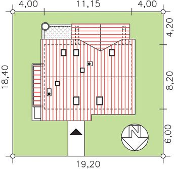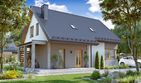 Graficzne opracowanie rzutów poglądowych widocznych na karcie projektu zostało wykonane przez Extradom.pl. Prezentowane przez Extradom.pl wizualizacje wykonane zostały przez autora projektu i należy poczytywać je jedynie za przykład i propozycję wykończenia, wizję architektoniczną autora projektu. Ostateczne wykończenie budynku może nastąpić na wiele sposobów. Szczegółowe rozwiązania zastosowane w oferowanej dokumentacji - w tym również ilość, lokalizacje i wygląd okien, drzwi, kominów - mogą w niewielkim stopniu różnić się od prezentowanej wizualizacji budynku.