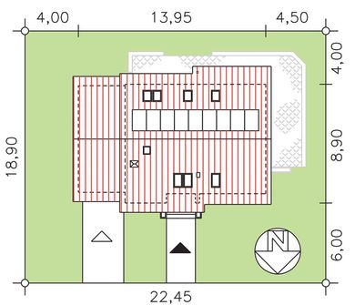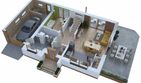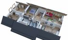Graficzne opracowanie rzutów poglądowych widocznych na karcie projektu zostało wykonane przez Extradom.pl. Prezentowane przez Extradom.pl wizualizacje wykonane zostały przez autora projektu i należy poczytywać je jedynie za przykład i propozycję wykończenia, wizję architektoniczną autora projektu. Ostateczne wykończenie budynku może nastąpić na wiele sposobów. Szczegółowe rozwiązania zastosowane w oferowanej dokumentacji - w tym również ilość, lokalizacje i wygląd okien, drzwi, kominów - mogą w niewielkim stopniu różnić się od prezentowanej wizualizacji budynku.