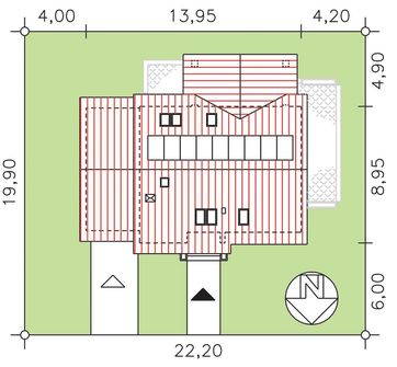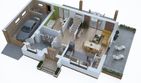 Graficzne opracowanie rzutów poglądowych widocznych na karcie projektu zostało wykonane przez Extradom.pl. Prezentowane przez Extradom.pl wizualizacje wykonane zostały przez autora projektu i należy poczytywać je jedynie za przykład i propozycję wykończenia, wizję architektoniczną autora projektu. Ostateczne wykończenie budynku może nastąpić na wiele sposobów. Szczegółowe rozwiązania zastosowane w oferowanej dokumentacji - w tym również ilość, lokalizacje i wygląd okien, drzwi, kominów - mogą w niewielkim stopniu różnić się od prezentowanej wizualizacji budynku.