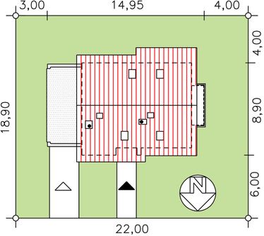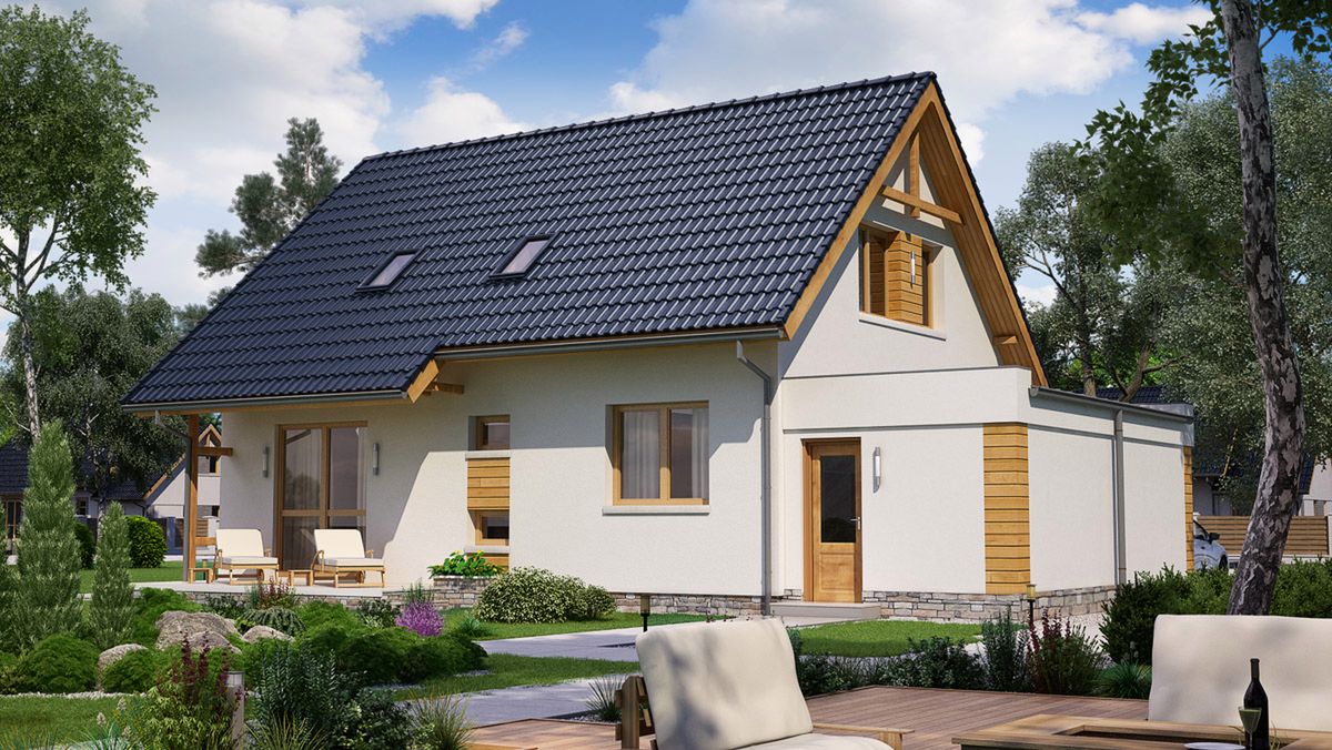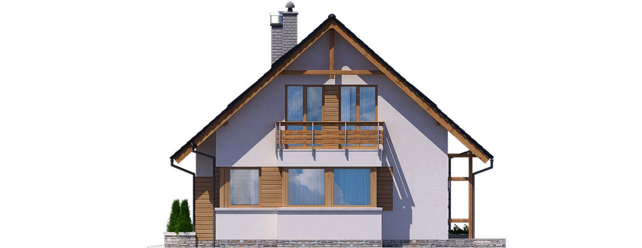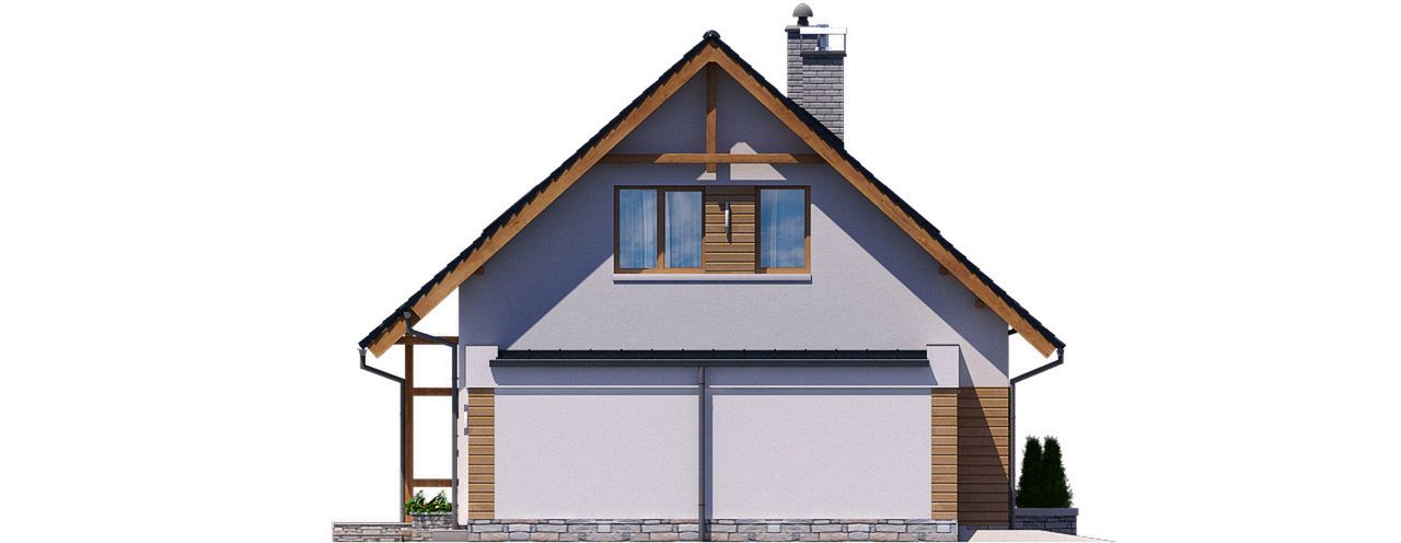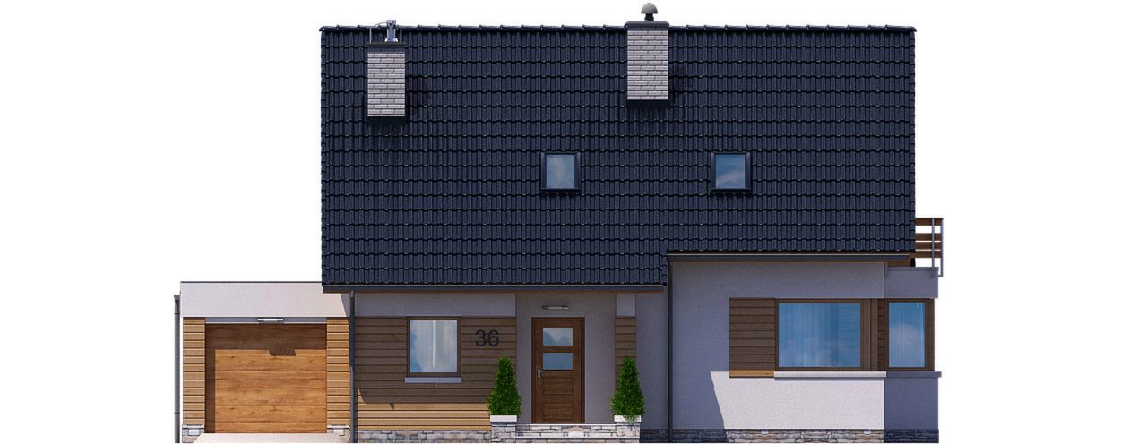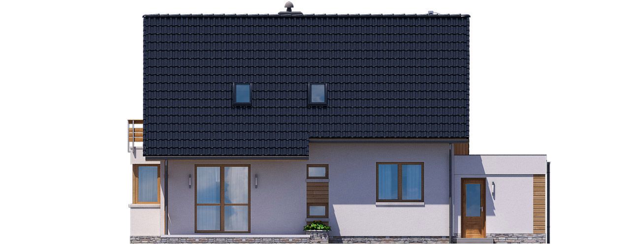 Graficzne opracowanie rzutów poglądowych widocznych na karcie projektu zostało wykonane przez Extradom.pl. Prezentowane przez Extradom.pl wizualizacje wykonane zostały przez autora projektu i należy poczytywać je jedynie za przykład i propozycję wykończenia, wizję architektoniczną autora projektu. Ostateczne wykończenie budynku może nastąpić na wiele sposobów. Szczegółowe rozwiązania zastosowane w oferowanej dokumentacji - w tym również ilość, lokalizacje i wygląd okien, drzwi, kominów - mogą w niewielkim stopniu różnić się od prezentowanej wizualizacji budynku.