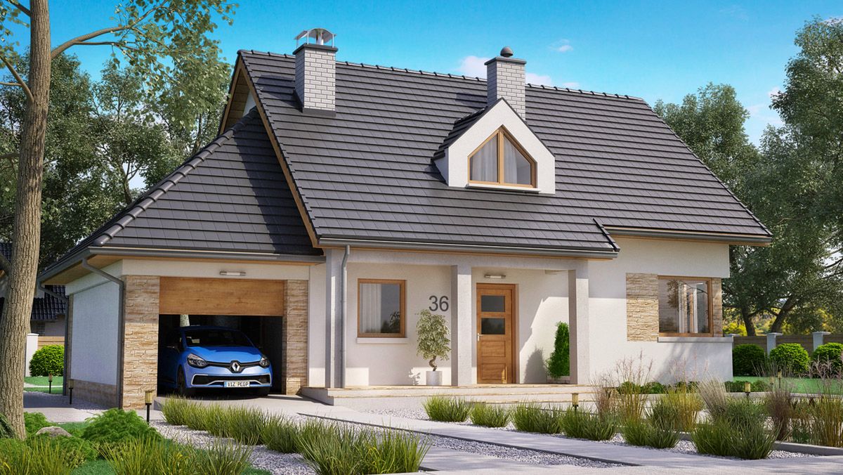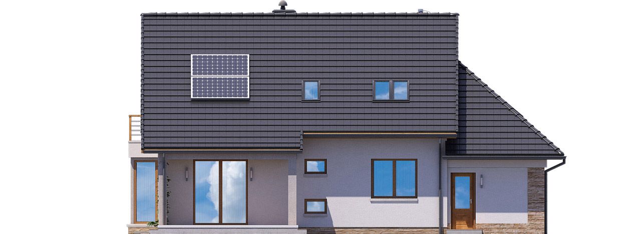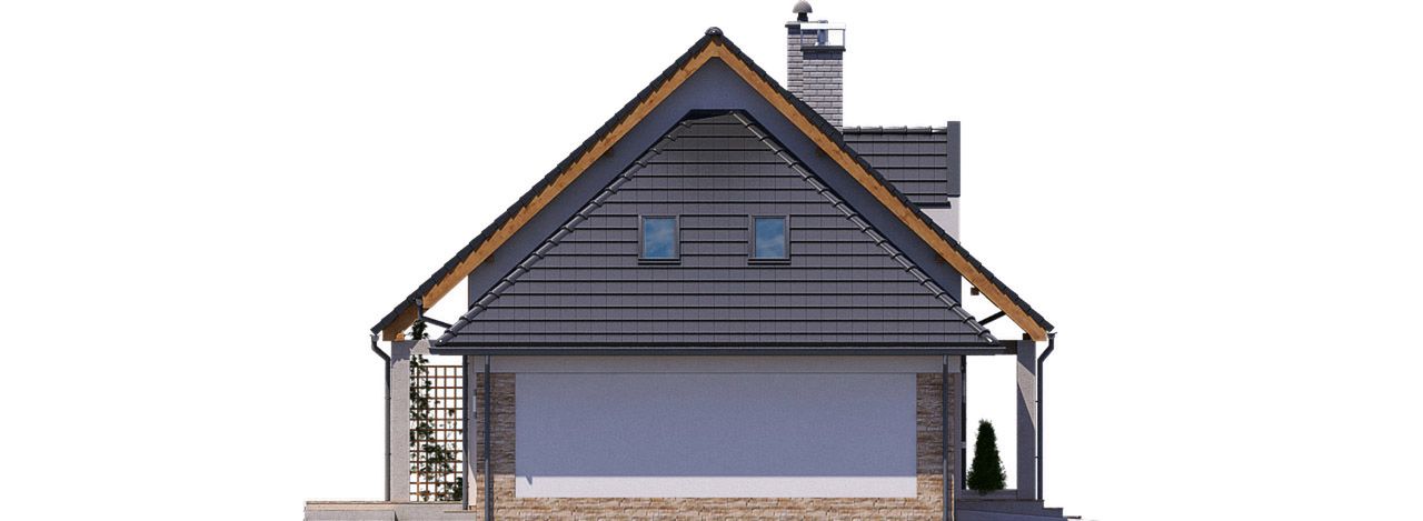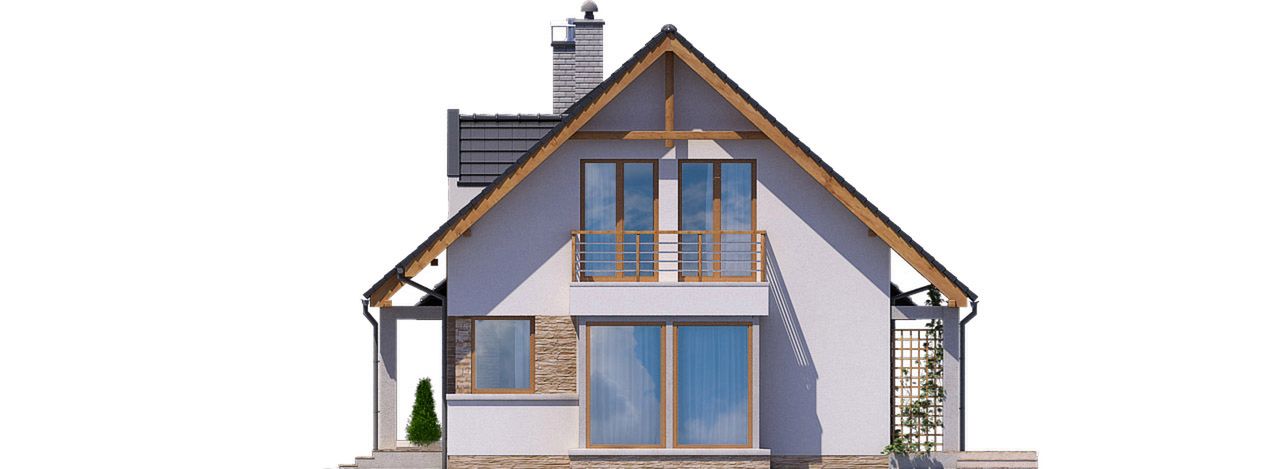 Graficzne opracowanie rzutów poglądowych widocznych na karcie projektu zostało wykonane przez Extradom.pl. Prezentowane przez Extradom.pl wizualizacje wykonane zostały przez autora projektu i należy poczytywać je jedynie za przykład i propozycję wykończenia, wizję architektoniczną autora projektu. Ostateczne wykończenie budynku może nastąpić na wiele sposobów. Szczegółowe rozwiązania zastosowane w oferowanej dokumentacji - w tym również ilość, lokalizacje i wygląd okien, drzwi, kominów - mogą w niewielkim stopniu różnić się od prezentowanej wizualizacji budynku.