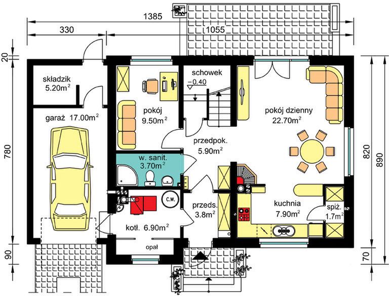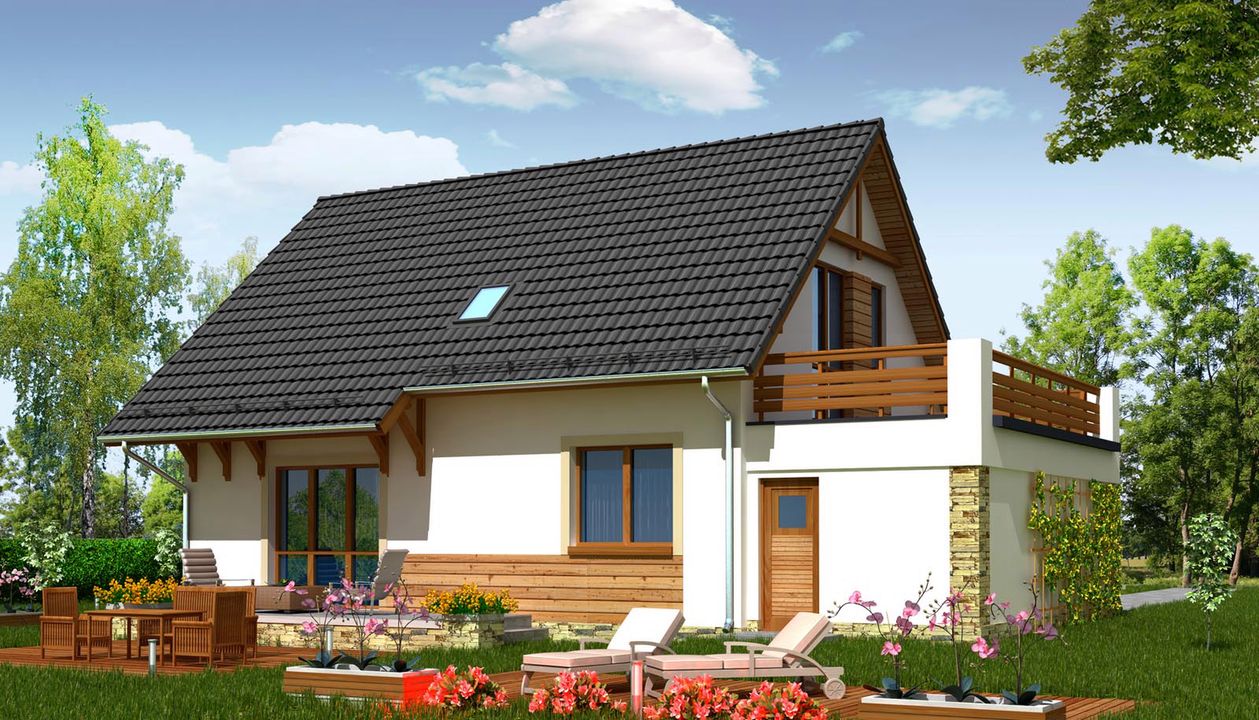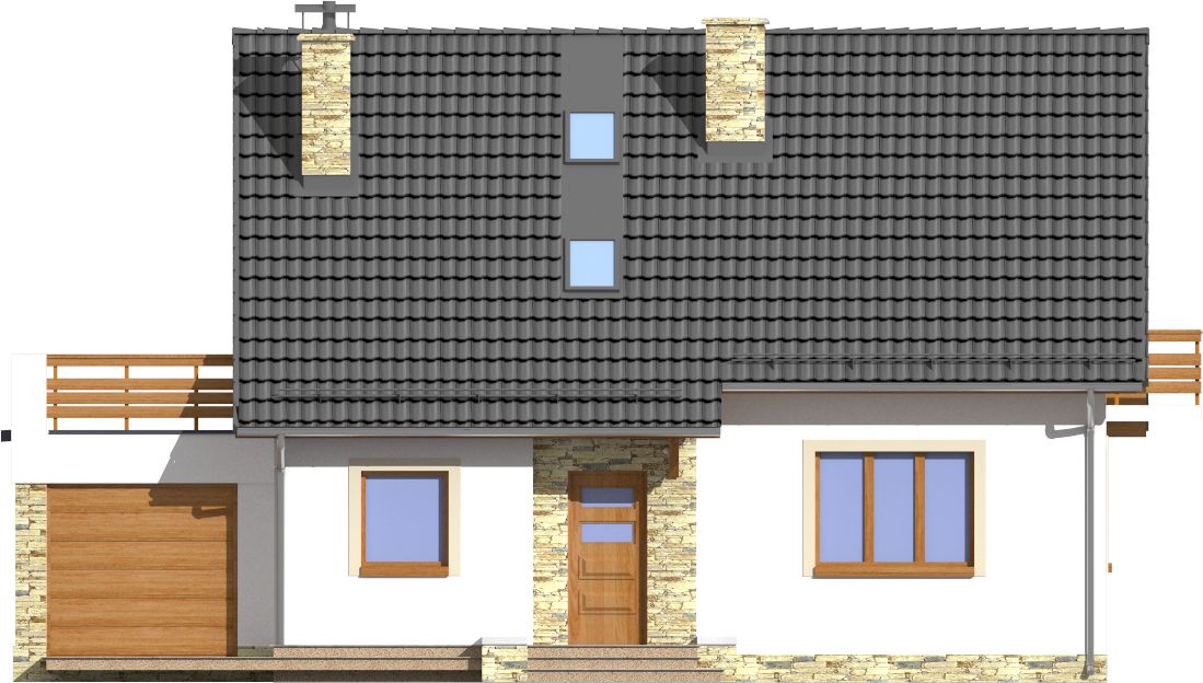 Graficzne opracowanie rzutów poglądowych widocznych na karcie projektu zostało wykonane przez Extradom.pl. Prezentowane przez Extradom.pl wizualizacje wykonane zostały przez autora projektu i należy poczytywać je jedynie za przykład i propozycję wykończenia, wizję architektoniczną autora projektu. Ostateczne wykończenie budynku może nastąpić na wiele sposobów. Szczegółowe rozwiązania zastosowane w oferowanej dokumentacji - w tym również ilość, lokalizacje i wygląd okien, drzwi, kominów - mogą w niewielkim stopniu różnić się od prezentowanej wizualizacji budynku.