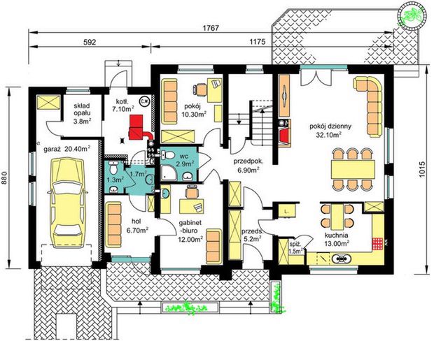 Projekt garażu z altaną