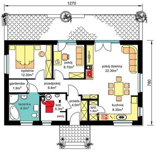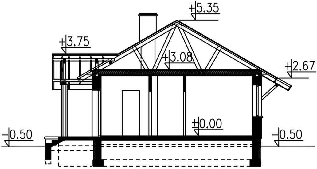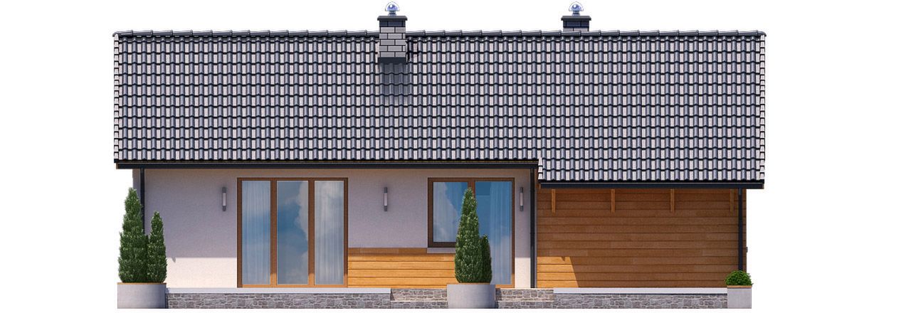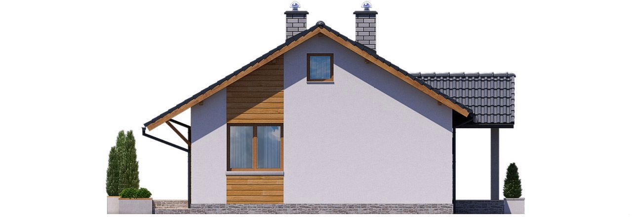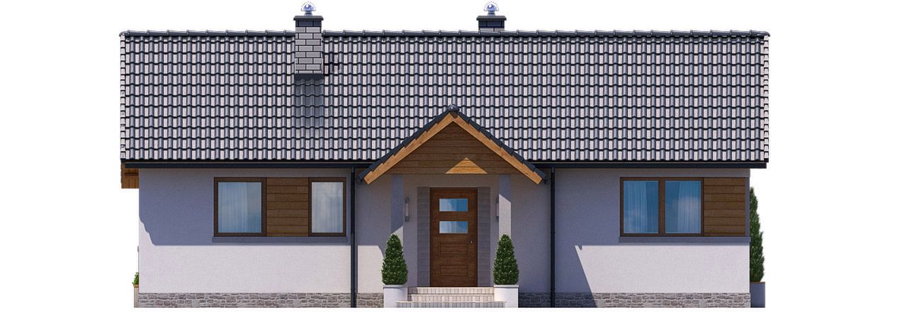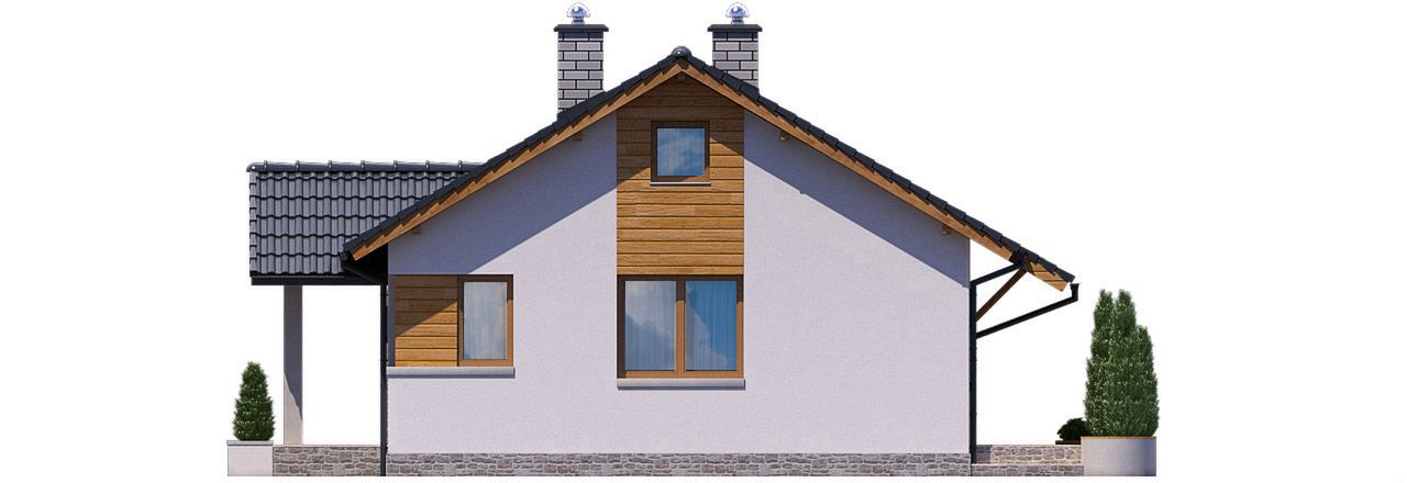 Graficzne opracowanie rzutów poglądowych widocznych na karcie projektu zostało wykonane przez Extradom.pl. Prezentowane przez Extradom.pl wizualizacje wykonane zostały przez autora projektu i należy poczytywać je jedynie za przykład i propozycję wykończenia, wizję architektoniczną autora projektu. Ostateczne wykończenie budynku może nastąpić na wiele sposobów. Szczegółowe rozwiązania zastosowane w oferowanej dokumentacji - w tym również ilość, lokalizacje i wygląd okien, drzwi, kominów - mogą w niewielkim stopniu różnić się od prezentowanej wizualizacji budynku.