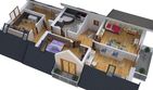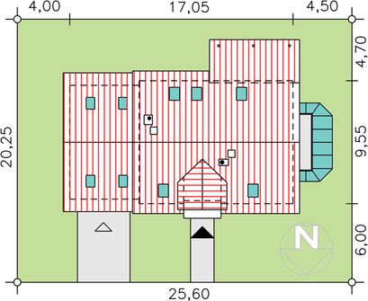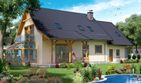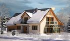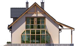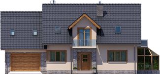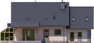 Graficzne opracowanie rzutów poglądowych widocznych na karcie projektu zostało wykonane przez Extradom.pl. Prezentowane przez Extradom.pl wizualizacje wykonane zostały przez autora projektu i należy poczytywać je jedynie za przykład i propozycję wykończenia, wizję architektoniczną autora projektu. Ostateczne wykończenie budynku może nastąpić na wiele sposobów. Szczegółowe rozwiązania zastosowane w oferowanej dokumentacji - w tym również ilość, lokalizacje i wygląd okien, drzwi, kominów - mogą w niewielkim stopniu różnić się od prezentowanej wizualizacji budynku.