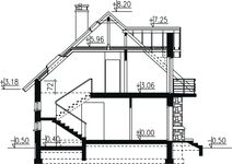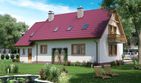 Budynek jednorodzinny parterowy nie podpiwniczony z poddaszem mieszkalnym i garażem dobudowanym. Front południowy (taras boczny lub frontowy, kuchnia w części tylnej). Program użytkowy: 5 pokoi, kuchnia, 2 łazienki, kotłownia ze składem opału oraz piwniczka pod schodami. Nad garażem strych nieużytkowy. Technologia tradycyjna murowana. Fundamenty murowane z bloczków betonowych, ławy żelbetowe. Ściany zewnętrzne nadziemia murowane z bloczków z betonu komórkowego z lekkim dociepleniem zewnętrznym. Strop prefabrykowany TERIVA I. Schody wewnętrzne żelbetowe wylewane, dwubiegowe. Dach drewniany dwuspadowy. Pokrycie dachówką cementową lub ceramiczną. Stolarka - typowa.