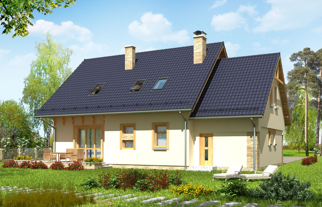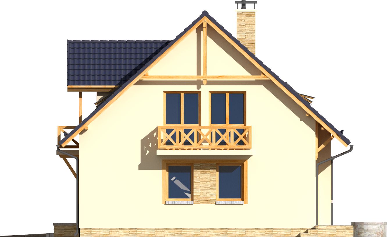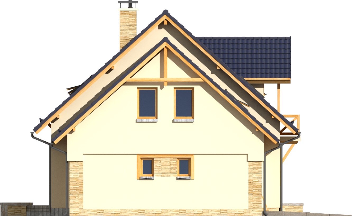Graficzne opracowanie rzutów poglądowych widocznych na karcie projektu zostało wykonane przez Extradom.pl. Prezentowane przez Extradom.pl wizualizacje wykonane zostały przez autora projektu i należy poczytywać je jedynie za przykład i propozycję wykończenia, wizję architektoniczną autora projektu. Ostateczne wykończenie budynku może nastąpić na wiele sposobów. Szczegółowe rozwiązania zastosowane w oferowanej dokumentacji - w tym również ilość, lokalizacje i wygląd okien, drzwi, kominów - mogą w niewielkim stopniu różnić się od prezentowanej wizualizacji budynku.