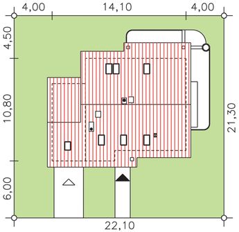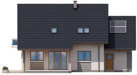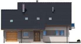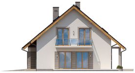 Graficzne opracowanie rzutów poglądowych widocznych na karcie projektu zostało wykonane przez Extradom.pl. Prezentowane przez Extradom.pl wizualizacje wykonane zostały przez autora projektu i należy poczytywać je jedynie za przykład i propozycję wykończenia, wizję architektoniczną autora projektu. Ostateczne wykończenie budynku może nastąpić na wiele sposobów. Szczegółowe rozwiązania zastosowane w oferowanej dokumentacji - w tym również ilość, lokalizacje i wygląd okien, drzwi, kominów - mogą w niewielkim stopniu różnić się od prezentowanej wizualizacji budynku.