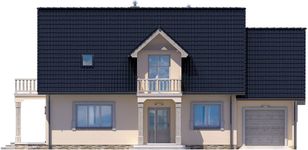 Graficzne opracowanie rzutów poglądowych widocznych na karcie projektu zostało wykonane przez Extradom.pl. Prezentowane przez Extradom.pl wizualizacje wykonane zostały przez autora projektu i należy poczytywać je jedynie za przykład i propozycję wykończenia, wizję architektoniczną autora projektu. Ostateczne wykończenie budynku może nastąpić na wiele sposobów. Szczegółowe rozwiązania zastosowane w oferowanej dokumentacji - w tym również ilość, lokalizacje i wygląd okien, drzwi, kominów - mogą w niewielkim stopniu różnić się od prezentowanej wizualizacji budynku.