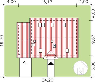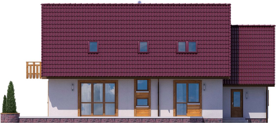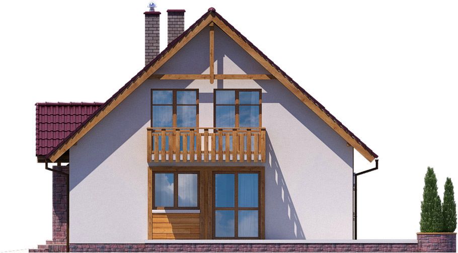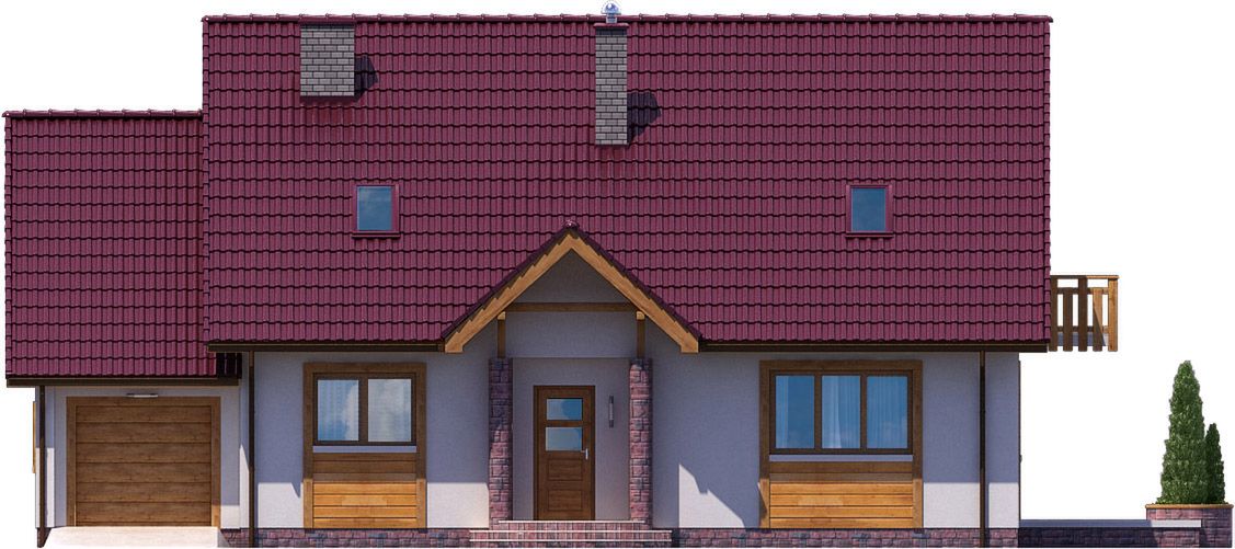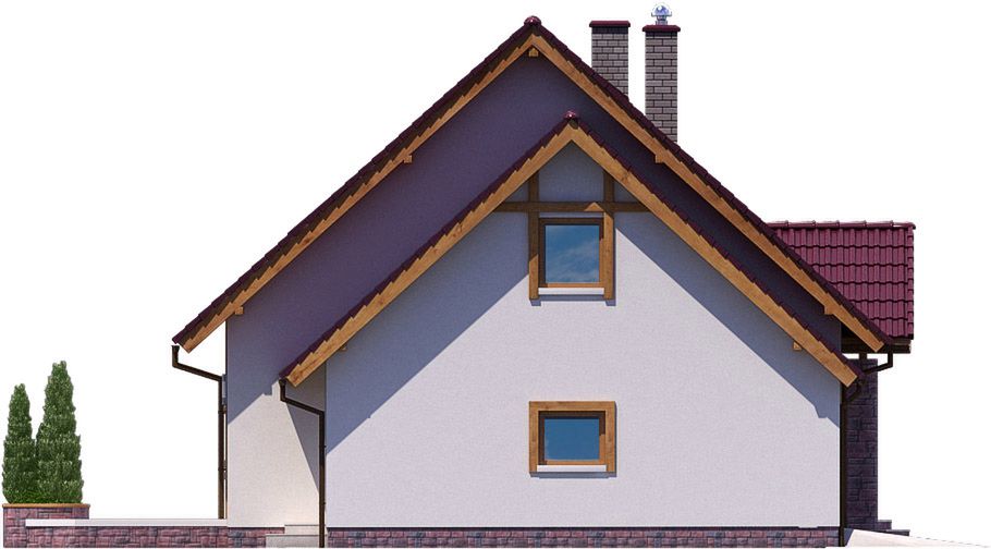 Graficzne opracowanie rzutów poglądowych widocznych na karcie projektu zostało wykonane przez Extradom.pl. Prezentowane przez Extradom.pl wizualizacje wykonane zostały przez autora projektu i należy poczytywać je jedynie za przykład i propozycję wykończenia, wizję architektoniczną autora projektu. Ostateczne wykończenie budynku może nastąpić na wiele sposobów. Szczegółowe rozwiązania zastosowane w oferowanej dokumentacji - w tym również ilość, lokalizacje i wygląd okien, drzwi, kominów - mogą w niewielkim stopniu różnić się od prezentowanej wizualizacji budynku.