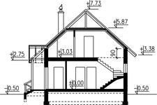 Graficzne opracowanie rzutów poglądowych widocznych na karcie projektu zostało wykonane przez Extradom.pl. Prezentowane przez Extradom.pl wizualizacje wykonane zostały przez autora projektu i należy poczytywać je jedynie za przykład i propozycję wykończenia, wizję architektoniczną autora projektu. Ostateczne wykończenie budynku może nastąpić na wiele sposobów. Szczegółowe rozwiązania zastosowane w oferowanej dokumentacji - w tym również ilość, lokalizacje i wygląd okien, drzwi, kominów - mogą w niewielkim stopniu różnić się od prezentowanej wizualizacji budynku.
