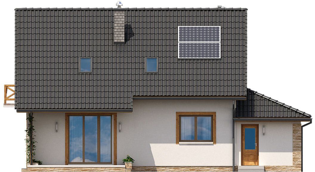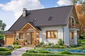 Graficzne opracowanie rzutów poglądowych widocznych na karcie projektu zostało wykonane przez Extradom.pl. Prezentowane przez Extradom.pl wizualizacje wykonane zostały przez autora projektu i należy poczytywać je jedynie za przykład i propozycję wykończenia, wizję architektoniczną autora projektu. Ostateczne wykończenie budynku może nastąpić na wiele sposobów. Szczegółowe rozwiązania zastosowane w oferowanej dokumentacji - w tym również ilość, lokalizacje i wygląd okien, drzwi, kominów - mogą w niewielkim stopniu różnić się od prezentowanej wizualizacji budynku.