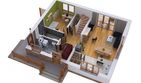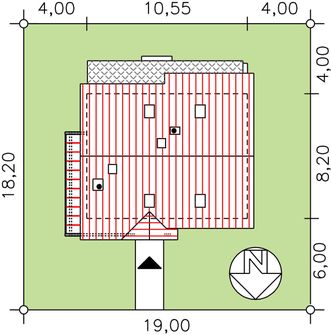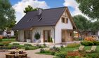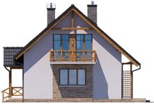 Graficzne opracowanie rzutów poglądowych widocznych na karcie projektu zostało wykonane przez Extradom.pl. Prezentowane przez Extradom.pl wizualizacje wykonane zostały przez autora projektu i należy poczytywać je jedynie za przykład i propozycję wykończenia, wizję architektoniczną autora projektu. Ostateczne wykończenie budynku może nastąpić na wiele sposobów. Szczegółowe rozwiązania zastosowane w oferowanej dokumentacji - w tym również ilość, lokalizacje i wygląd okien, drzwi, kominów - mogą w niewielkim stopniu różnić się od prezentowanej wizualizacji budynku.