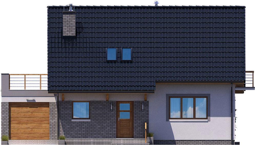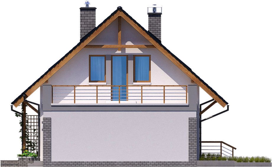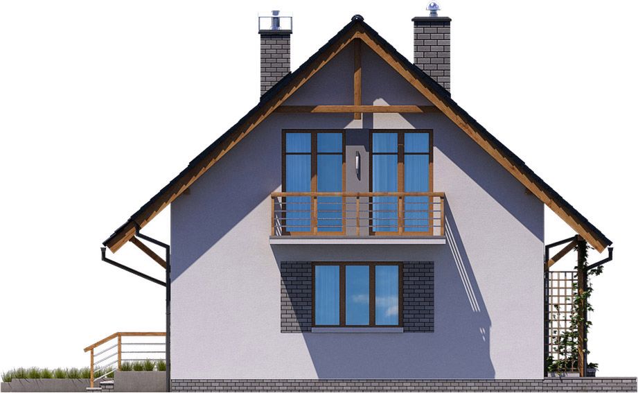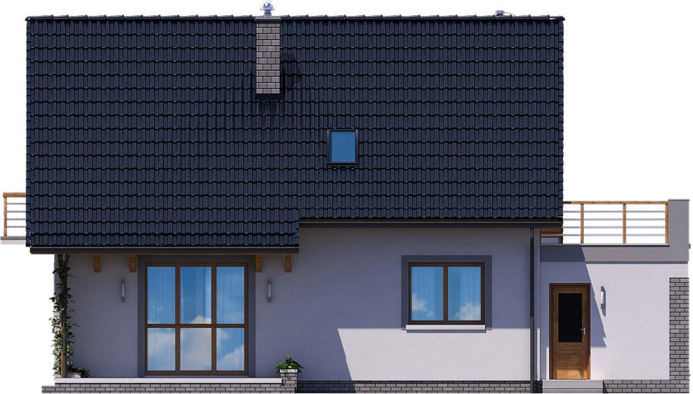 Graficzne opracowanie rzutów poglądowych widocznych na karcie projektu zostało wykonane przez Extradom.pl. Prezentowane przez Extradom.pl wizualizacje wykonane zostały przez autora projektu i należy poczytywać je jedynie za przykład i propozycję wykończenia, wizję architektoniczną autora projektu. Ostateczne wykończenie budynku może nastąpić na wiele sposobów. Szczegółowe rozwiązania zastosowane w oferowanej dokumentacji - w tym również ilość, lokalizacje i wygląd okien, drzwi, kominów - mogą w niewielkim stopniu różnić się od prezentowanej wizualizacji budynku.