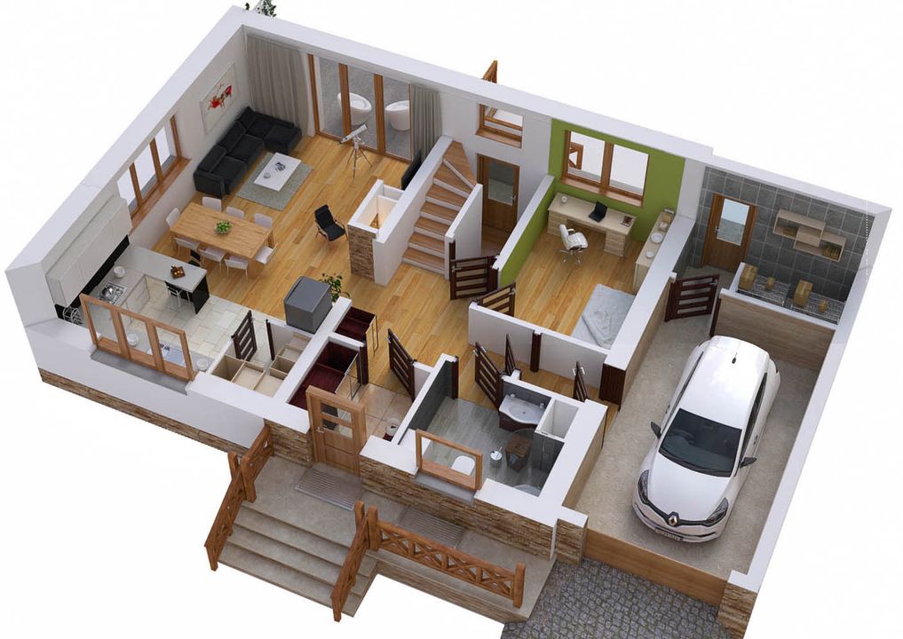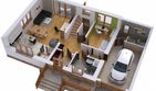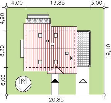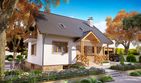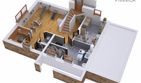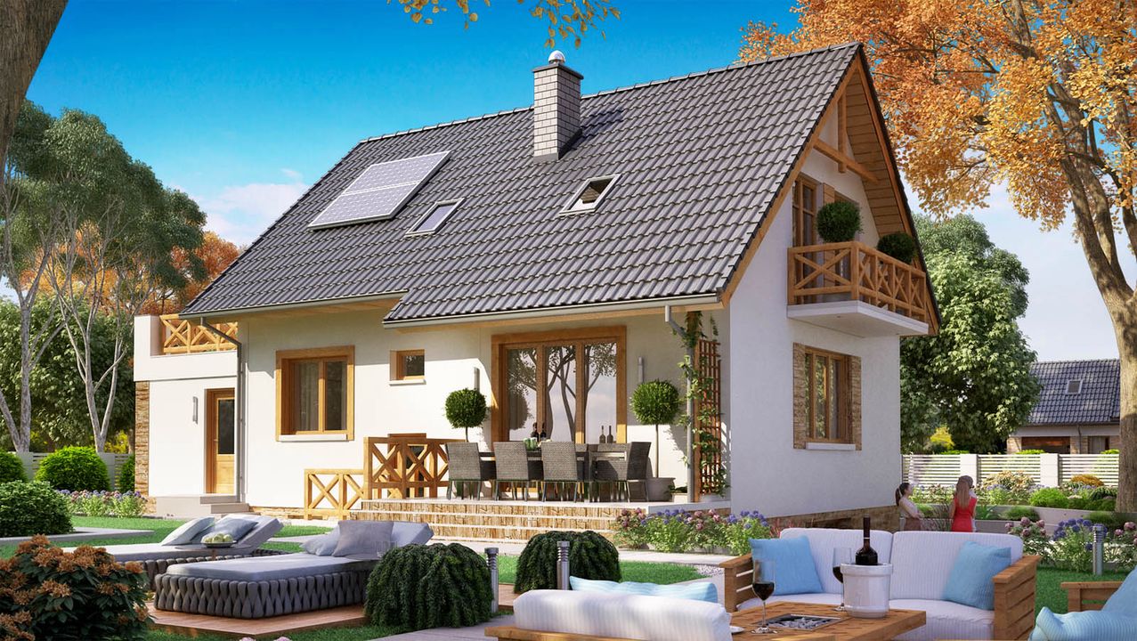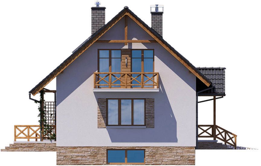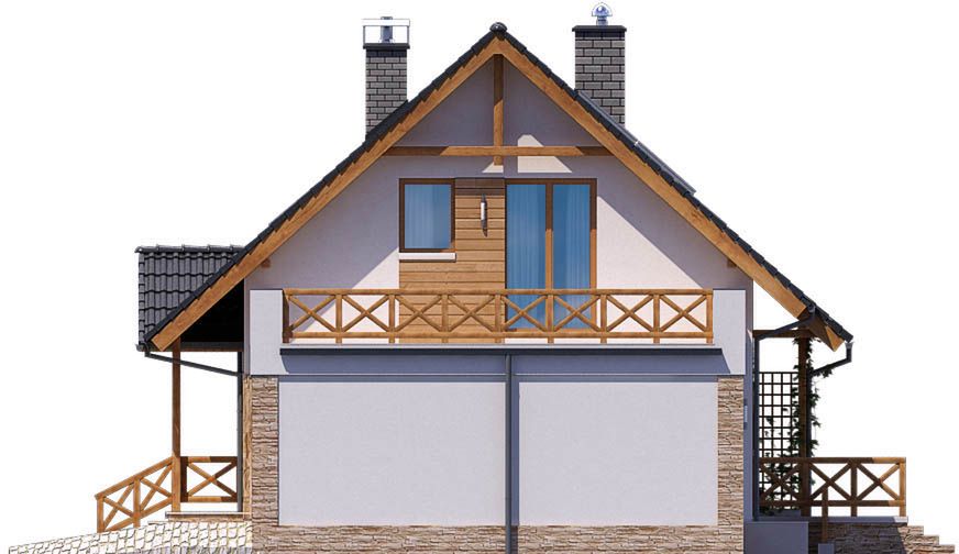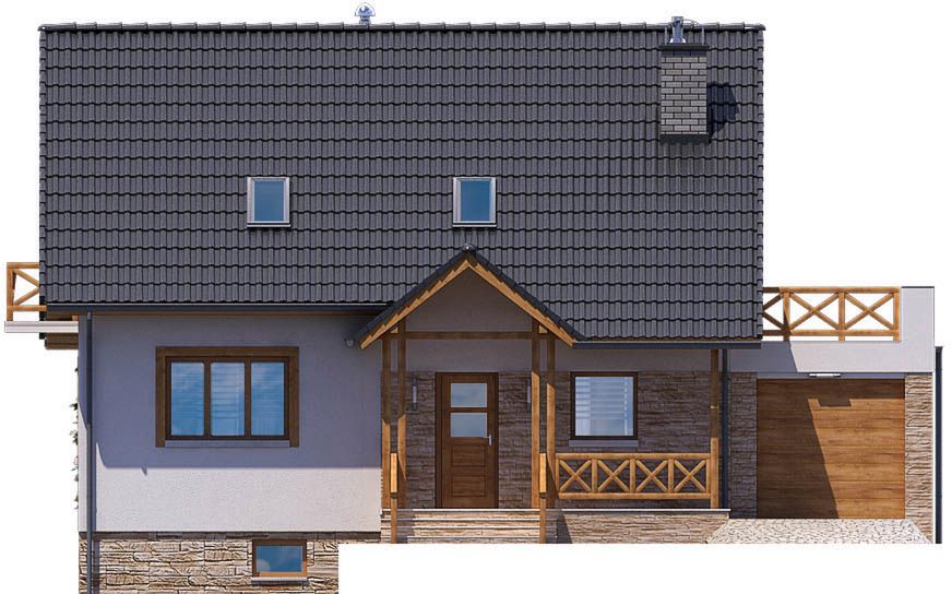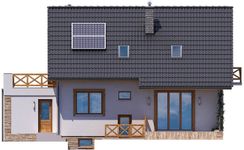 Graficzne opracowanie rzutów poglądowych widocznych na karcie projektu zostało wykonane przez Extradom.pl. Prezentowane przez Extradom.pl wizualizacje wykonane zostały przez autora projektu i należy poczytywać je jedynie za przykład i propozycję wykończenia, wizję architektoniczną autora projektu. Ostateczne wykończenie budynku może nastąpić na wiele sposobów. Szczegółowe rozwiązania zastosowane w oferowanej dokumentacji - w tym również ilość, lokalizacje i wygląd okien, drzwi, kominów - mogą w niewielkim stopniu różnić się od prezentowanej wizualizacji budynku.